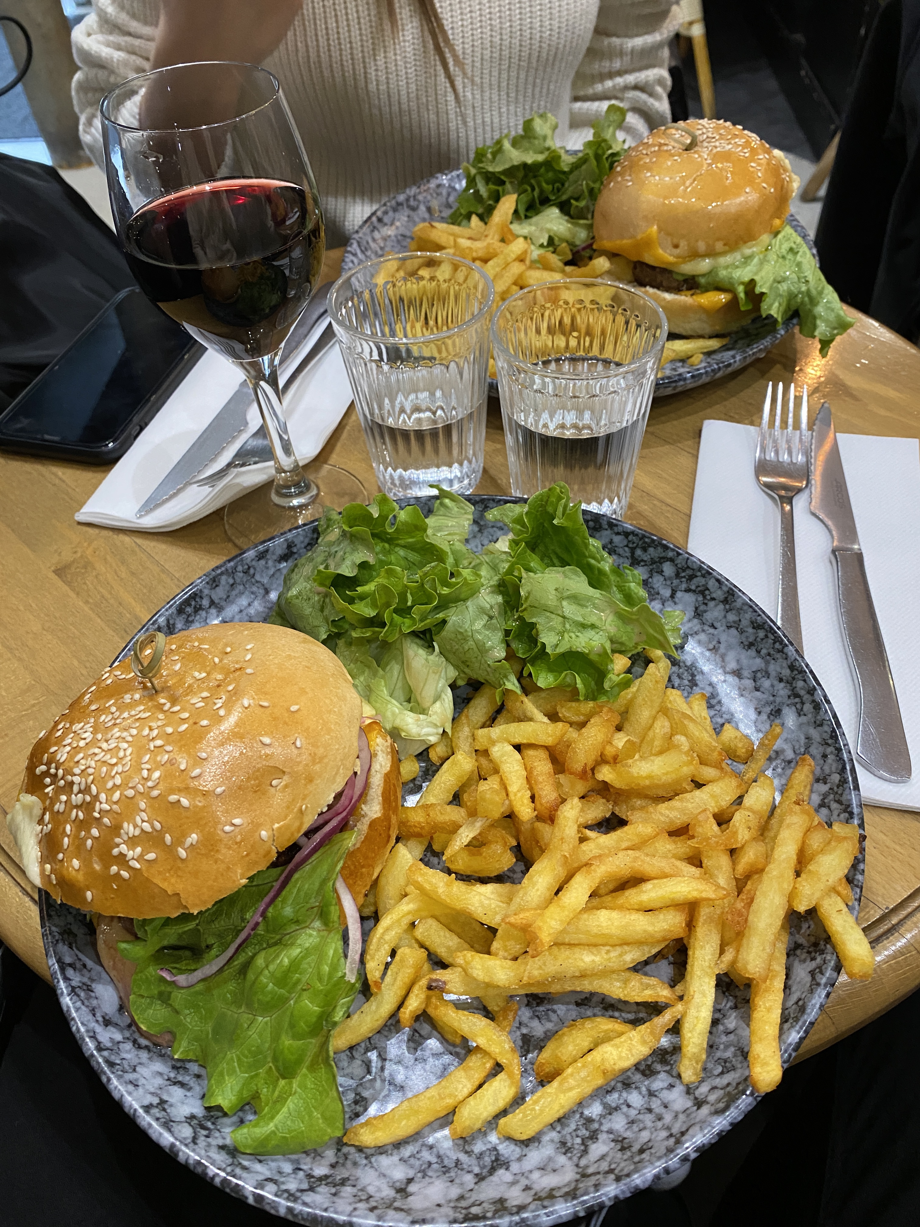 Nous avons commandé du confit de canard et des hamburgers, la serveuse était vraiment bonne, la nourriture était délicieuse