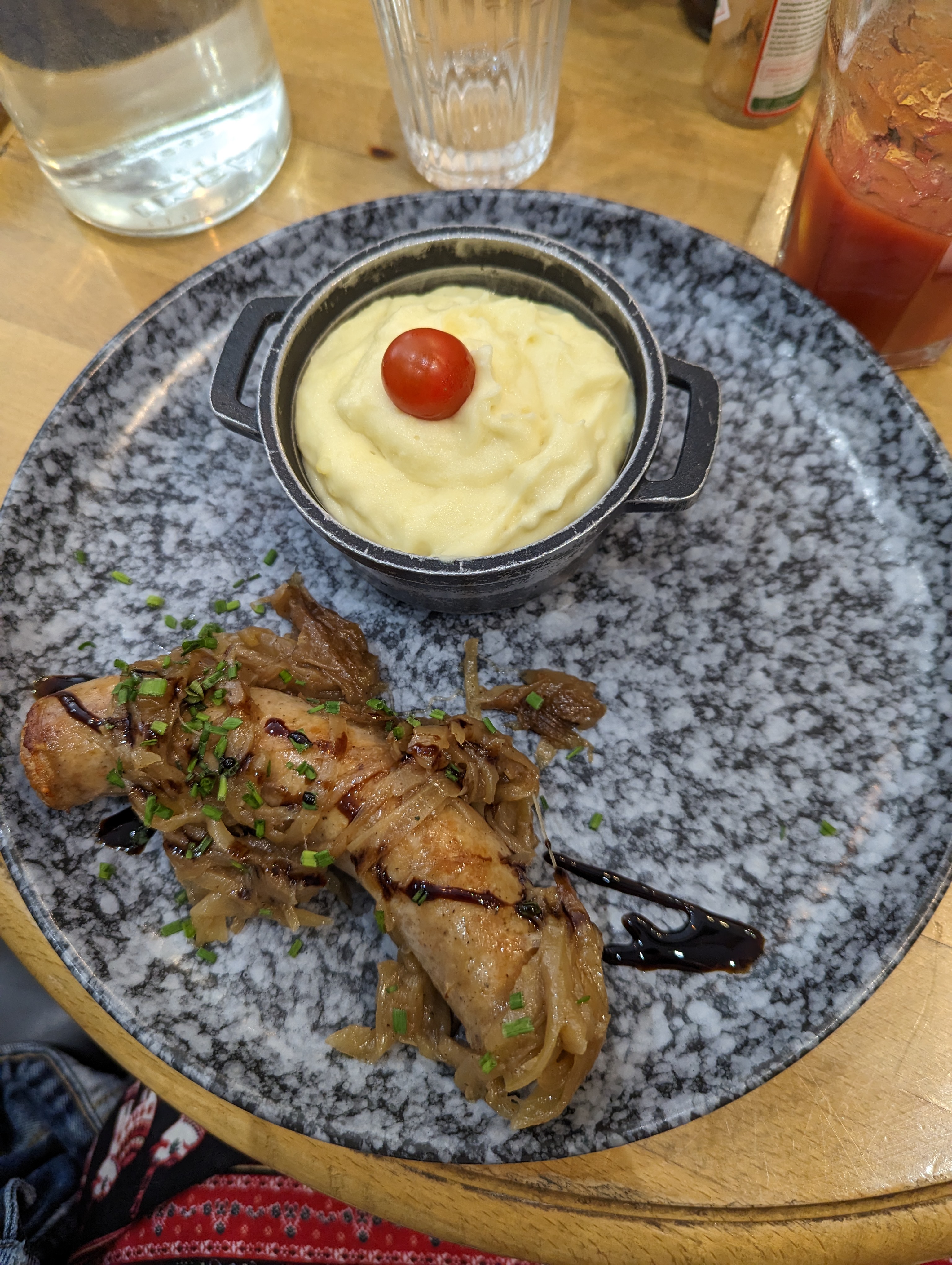 Saucisse d'Auvergne avec purée au cantal et salade thai. Très bon et service rapide.