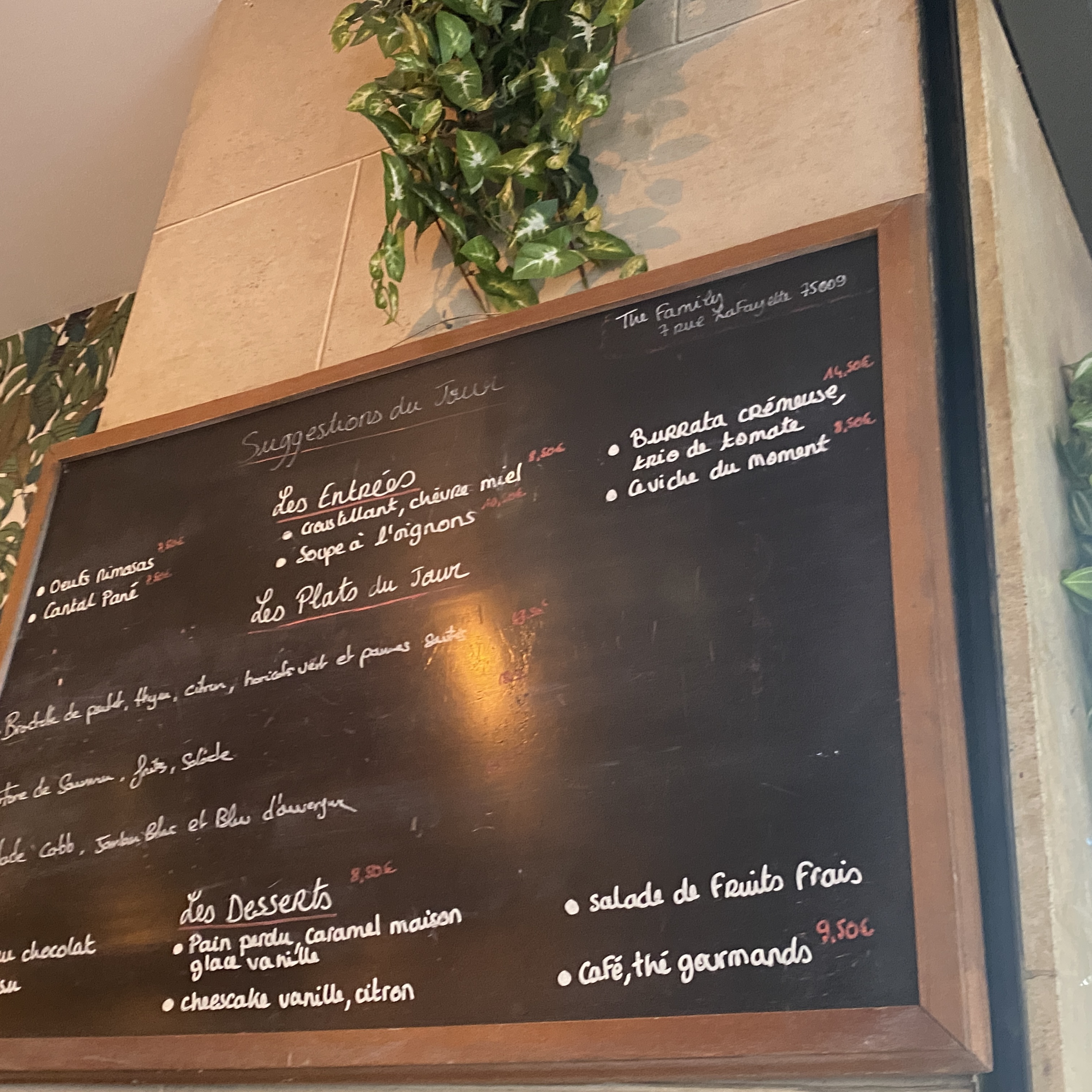 Nous avions réservé une table pour midi et nous avons été très bien reçus ! Le menu à 20 euros est un super plan ! Je reviendrai rapidement car on se sent comme chez soit chez The Family !