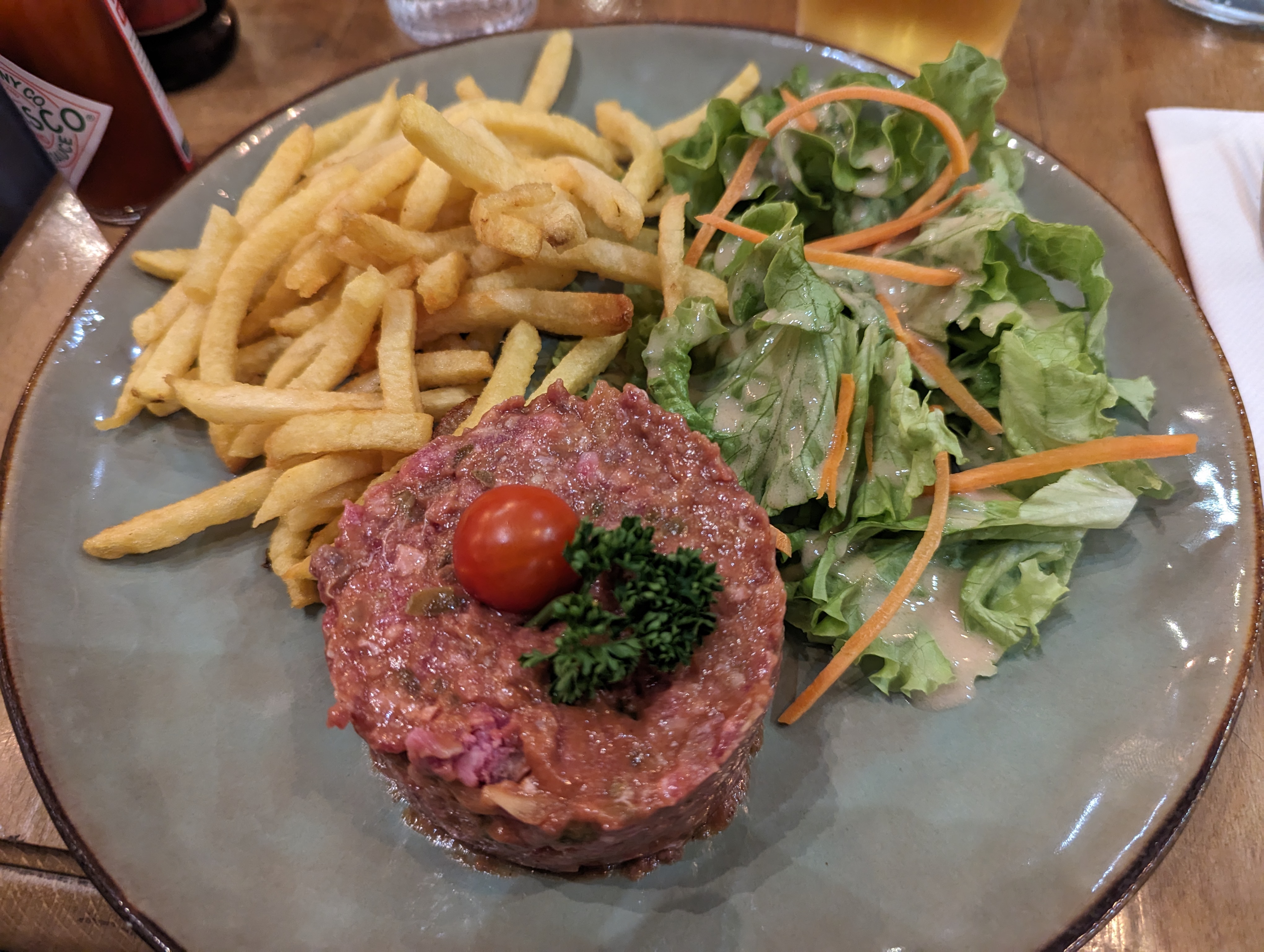 Nous avons pris un bon repas en arrivant à Paris. Un bon tartare et une bière, exactement ce que le médecin a prescrit
