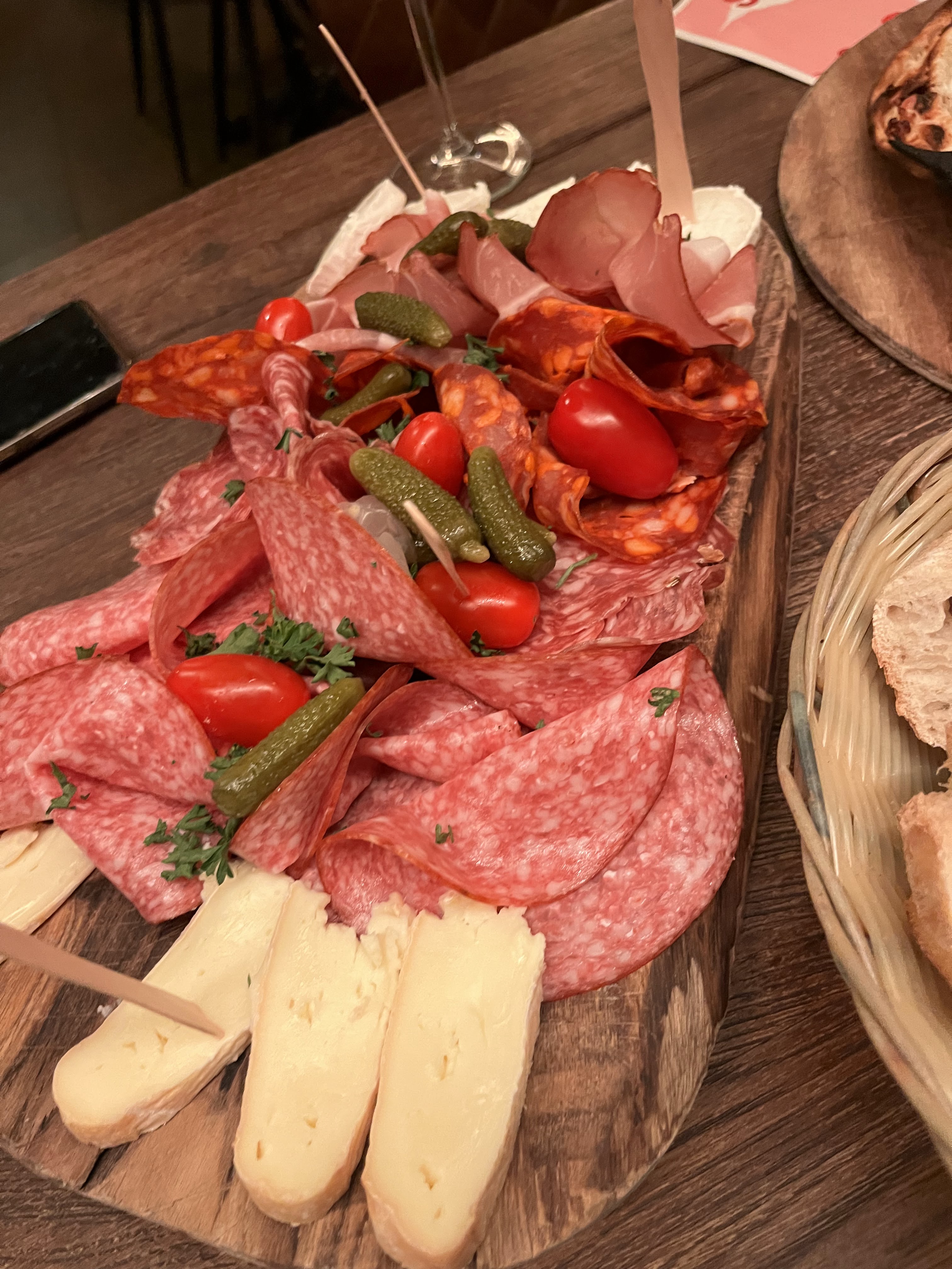 Planche apéritif au top par contre un peu déçu de l'accueil, le serveur très aimable mais malheureusement il est pas venu pendant toute la durée de la dégustation alors que nous avions fini depuis longtemps. Ambiance cool 👍 on recommande