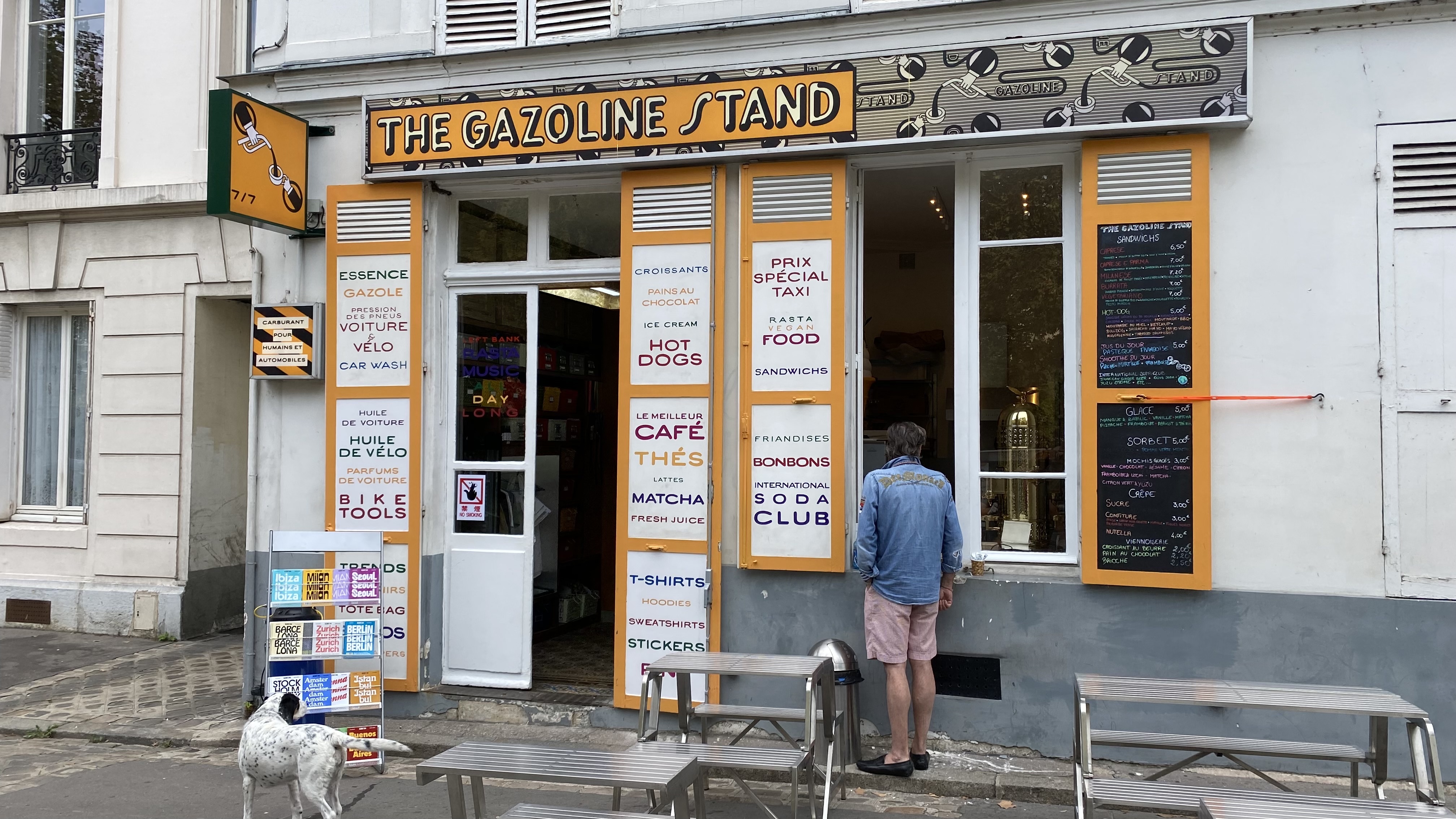 Par quoi commencer… Tout d’abord l’extérieur est unique. Une curiosité à ne pas manquer sur Paris ! Je n’ai pas résisté à y aller de ma petite publication instagram. Que dire ? C’est une station-service, mais un peu spéciale. On y vend de l’essence, oui, mais aussi du café (incroyable, la machine à café est une petite merveille de machinerie), hot-dogs et autres délices en tous genre, comme des bonbons ou des sucreries venues du Japon ou de Corée du Sud. Il y a aussi une boutique d’objets et de vêtements en tout genre, dans un style tout à fait hype et original, du simple gadget au matériel de dessin pour architecte ! Pour finir, le personnel qui est génial. La pression des pneus pendant qu’on se restaure avec un hot-dog (délicieux) ? On s’en occupe pour vous. L’endroit propose aussi divers services pour les cyclistes (huile, réparation, etc.). (Petit coucou à Jawad et Mathis, merci pour votre sourire et votre sens du service !) Enfin, pour le côté station essence, c’est un peu « à l’ancienne » dans le bon sens du terme. Ne bougez pas de votre siège ! Le pompiste s’occupe de tout, et nettoiera même votre pare-brise … Pour finir, c’est un endroit, une équipe, un service au top. Immanquable sur Paris !! Je recommande à 300% !