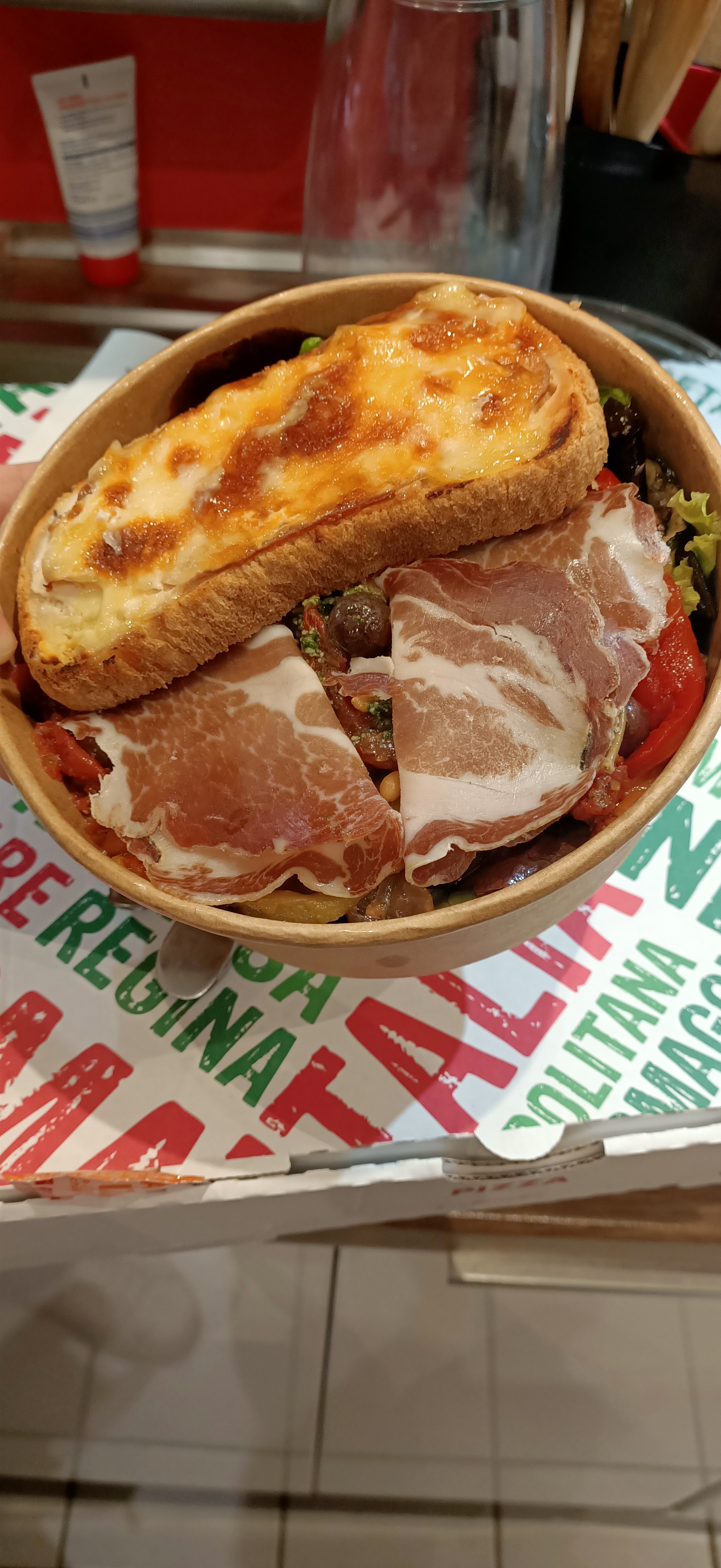 Vraiment très sympa. Lieu vivant et accueil remarquable. Les légumes de ma salade étaient délicieux et en quantité, ils ne cachaient pas un énorme tas de salade verte. La terrasse est très conviviale. J'ai néanmoins un peu regretté que le jambon de parme prévu ait été remplacé par de la coppa. Excellent rapport qualité prix. Un restaurant accessible aux petits budgets pour un repas très copieux. Bravo !!
