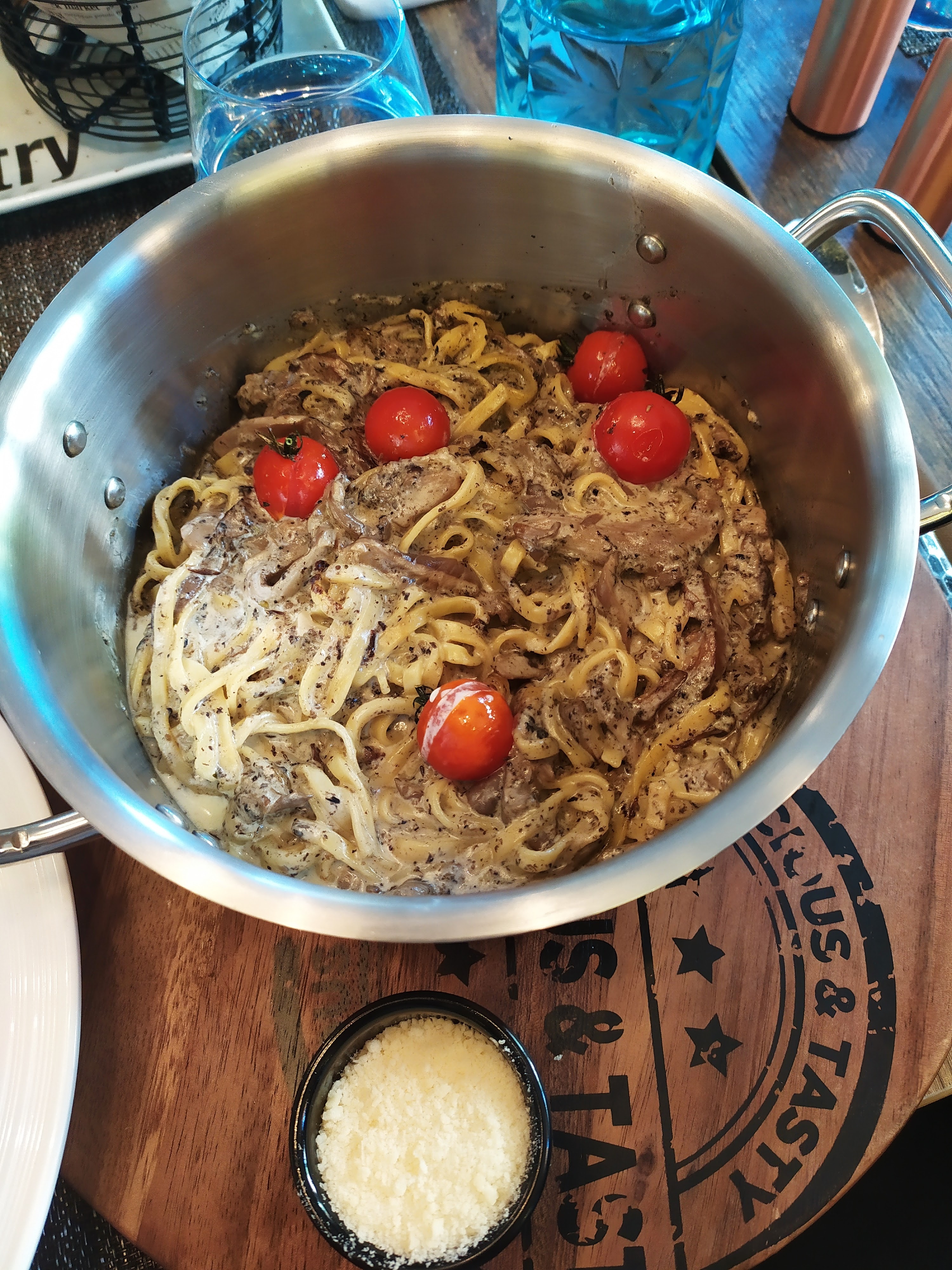 Les pates étaient très bonnes je recommande En revanche la chantilly du dessert n'était pas de qualité, vraiment pas le goût de chantilly