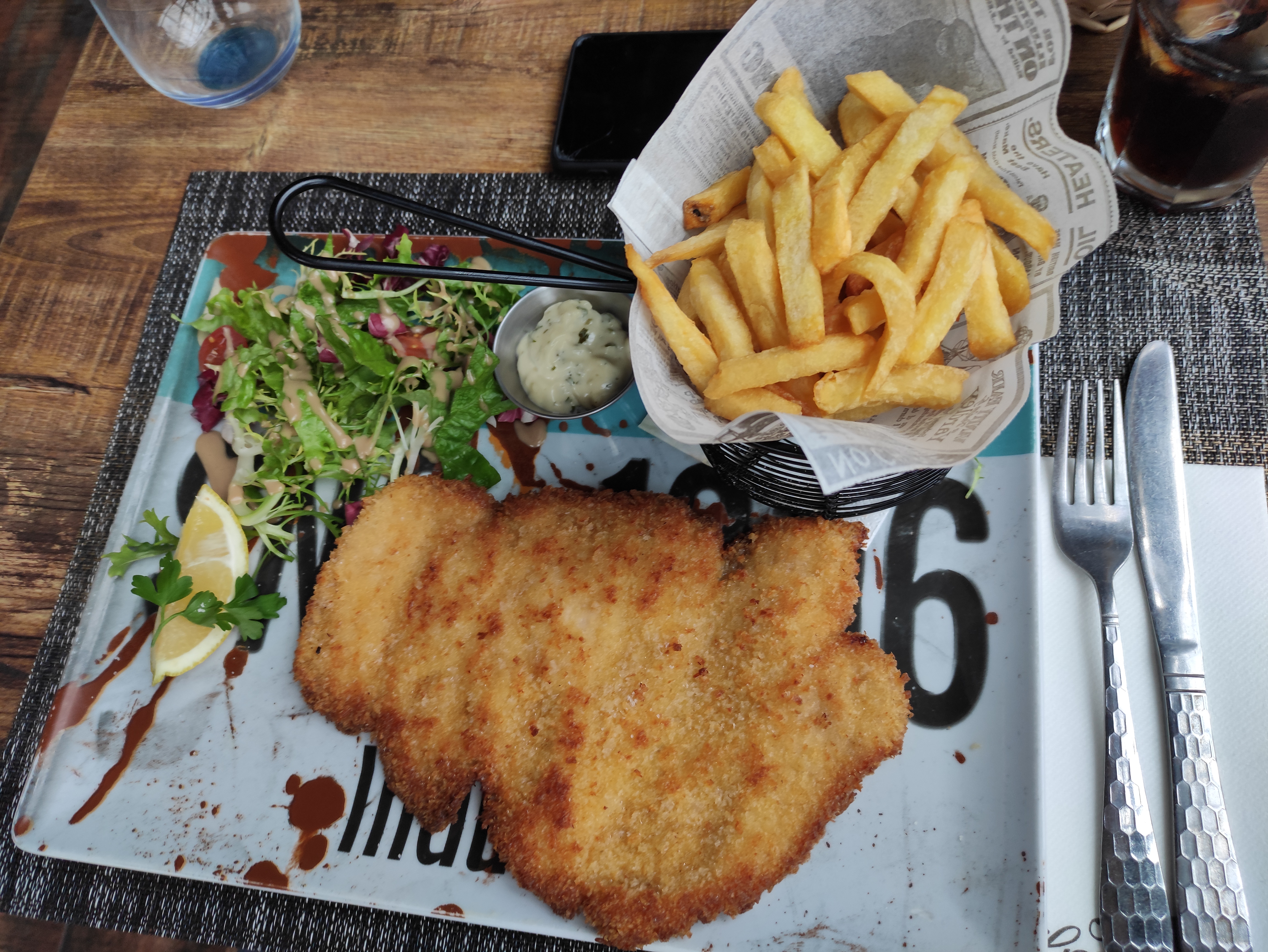 Salade cromesqui originale et copieuse. J’ai testé en livraison mais passant devant régulièrement je sais que le lieu et le cadre donne envie.