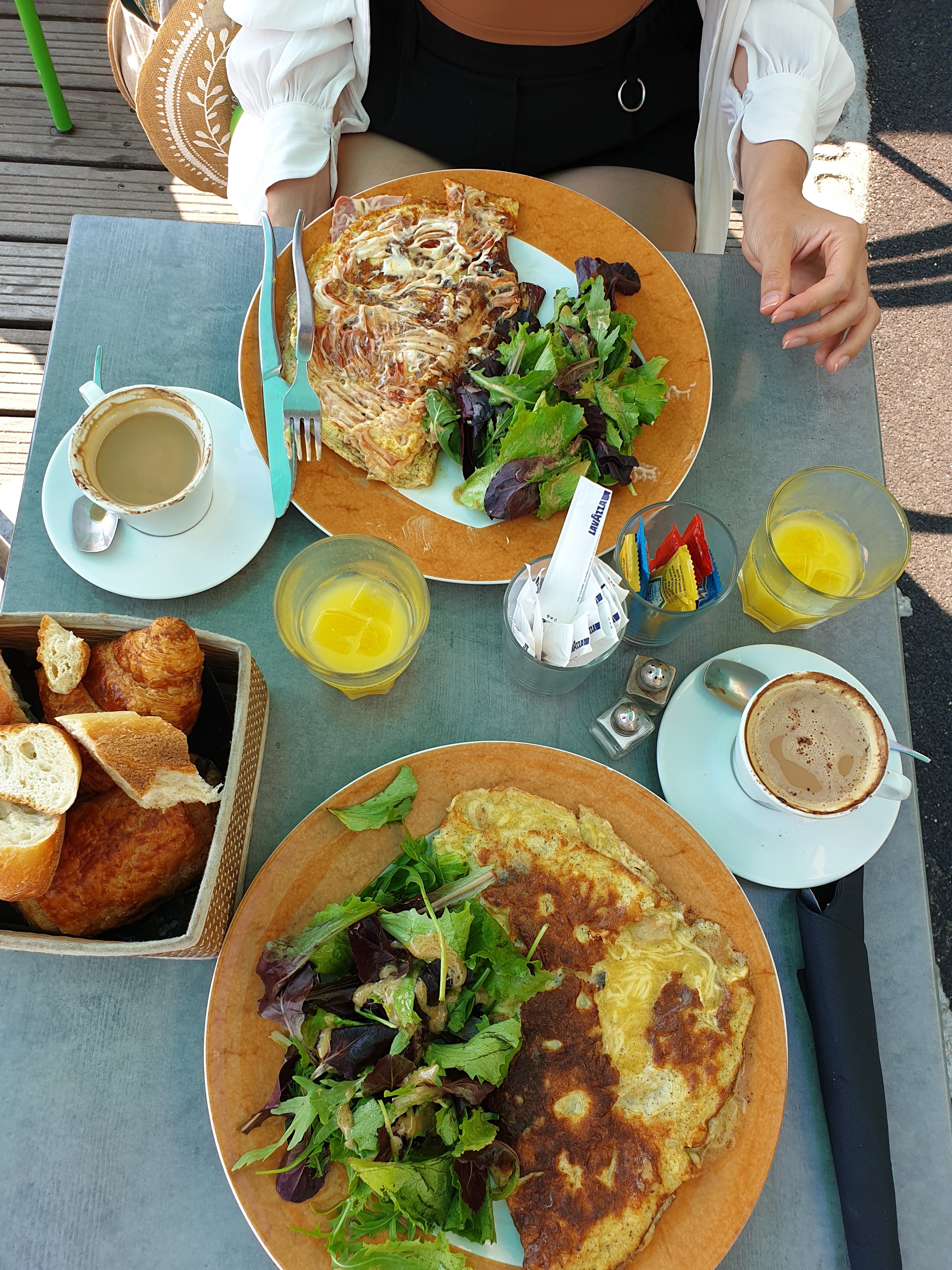 Vraiment mauvais service, surfait. La nourriture est venue avec 2 cheveux. L'omelette coûtait 8 euros et c'était la pire omelette que j'ai jamais mangée et nous avons également dû récupérer la salade. Et les couverts étaient sales.