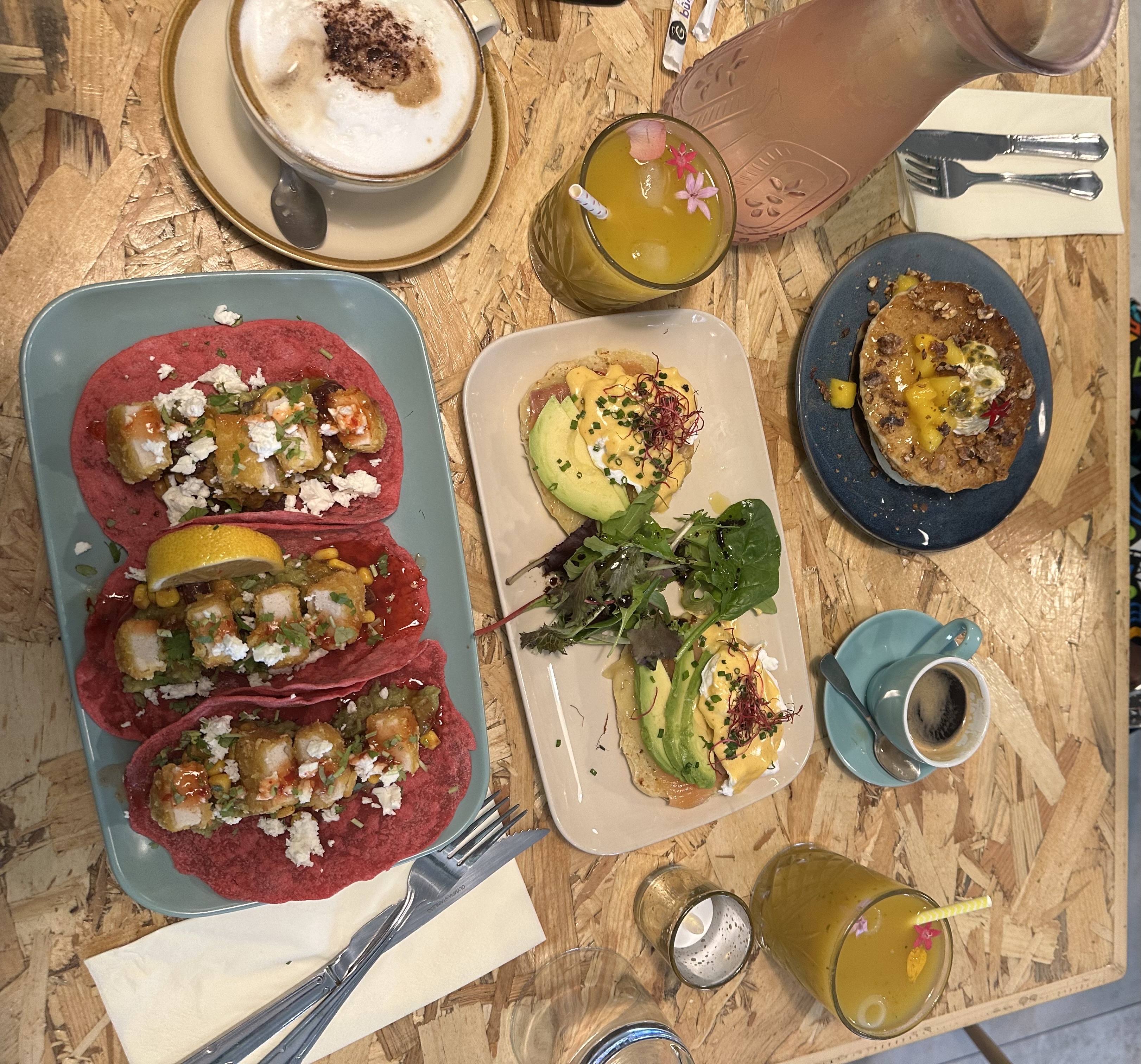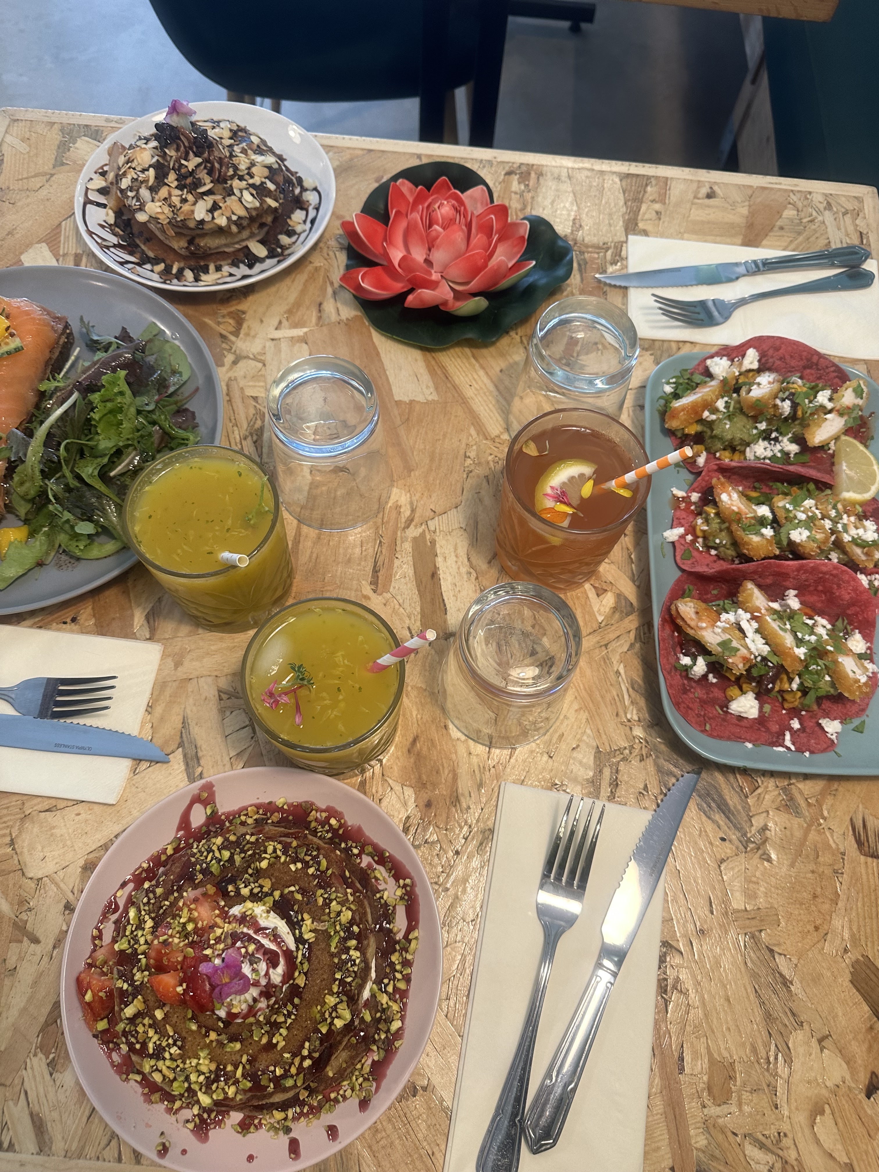 Très joli lieux, nous sommes venus sans réservation et nous avons quand même été très bien reçu et nous avons même pu choisir notre table. La salade était très très bonne. Les pancakes très aérées. Tout était très très copieux ! Il y’a des options végétariennes et Vegan 🌱 Ah et les jus aussi sont incroyables !!! Merci pour l’accueil ✨