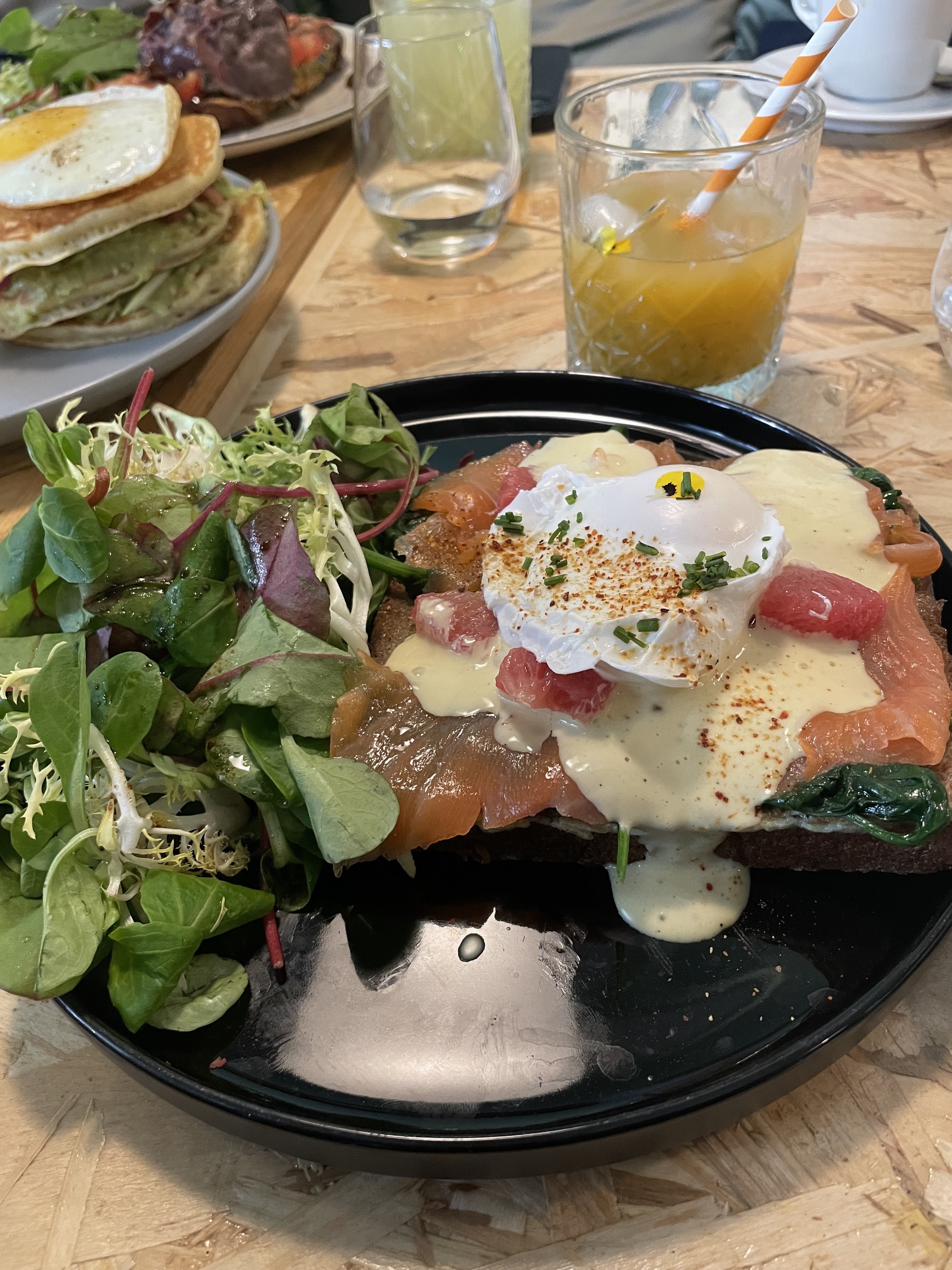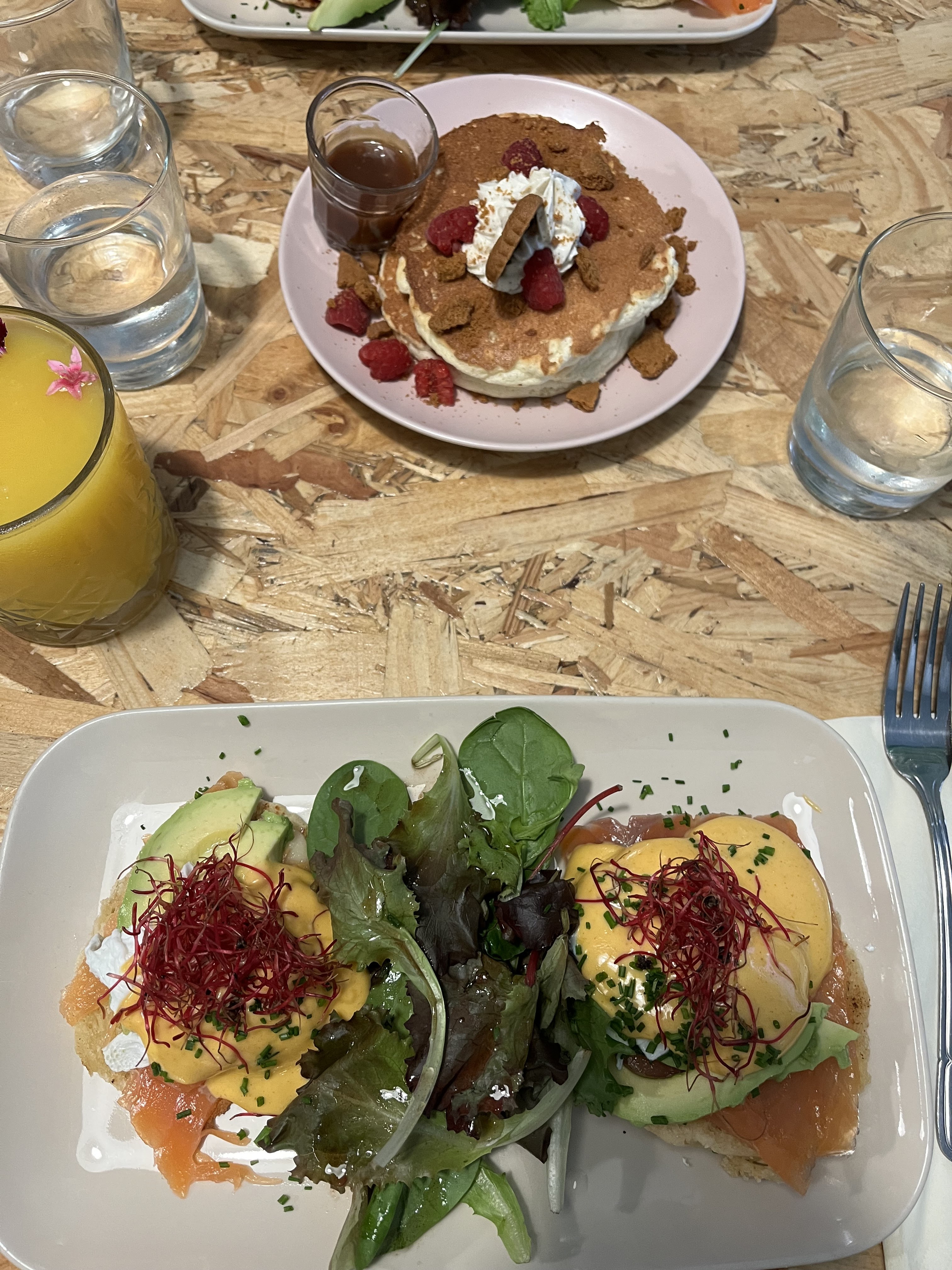 Œufs bénédictines très bons. Bcp d’attente le dimanche c’est dommage mais comme le restaurant est nouveau il y a du rodage à faire. Le pancake sucrés au spéculos était sec aucune crème a l’intérieur que du spéculos. Un peu déçue dans l’ensemble mais bon restaurant avec du potentiel