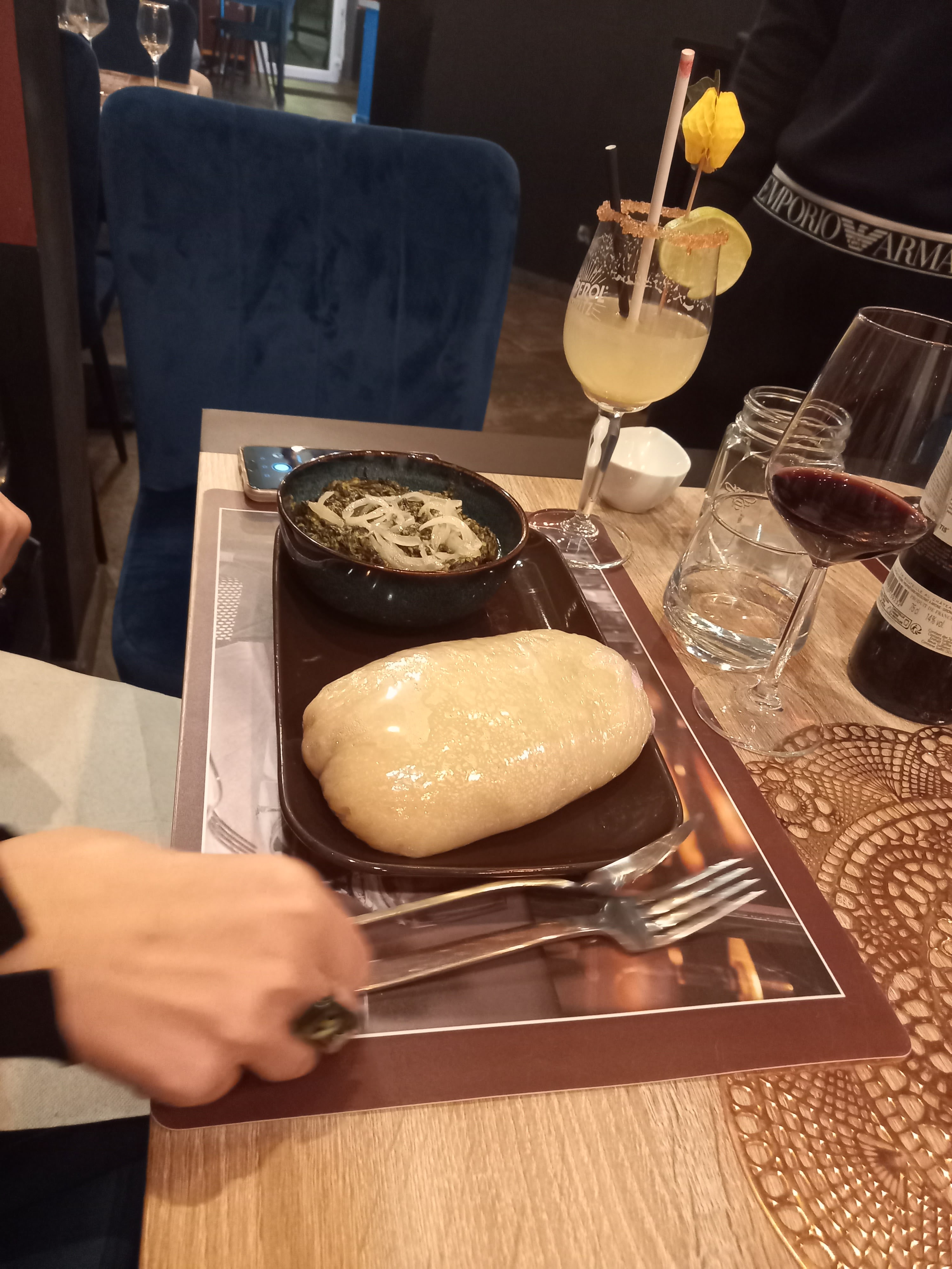 Dîner un vendredi, en couple. Une adresse que je conseille, la cheffe de cuisine en personne a pris le temps de nous expliquer chaque plat de la carte et de nous faire voyager à travers l'Afrique. Mon compagnon s'est régalé avec le poulet DG, pour ma part déçue de Ndolé qui n'a pas su me conquérir (une histoire de goût, absolument de qualité du plat, je pense que mon palais n'est pas habitué!). Néanmoins, nous reviendrons sans aucun doute pour continuer à tester d'autres plats, car l'expérience est au RDV. Je recommande à 100% !