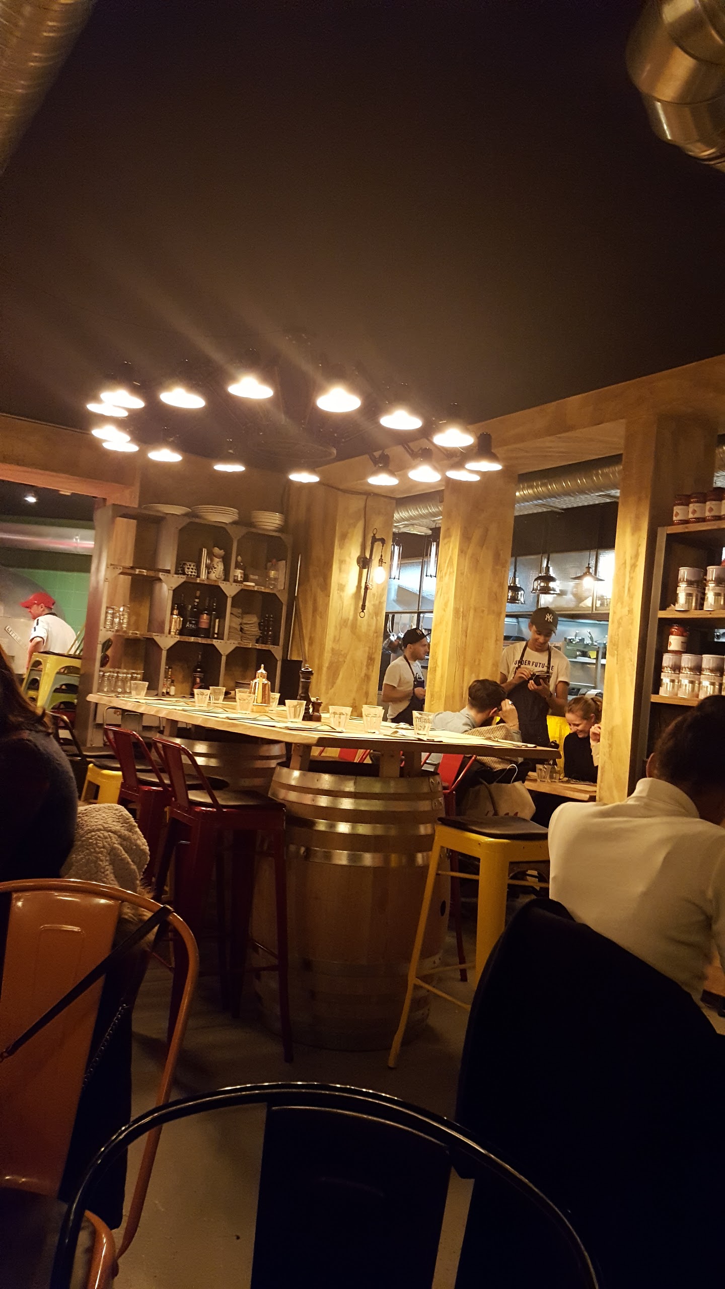 Pizzas bonnes ! Ambiance très animé et déco très belle ! Par contre le service est un peu lent et pas très agréable, mais le lieu est bien placé et c'est l'endroit idéal pour les rencontres avec des amis . Prix corrects .