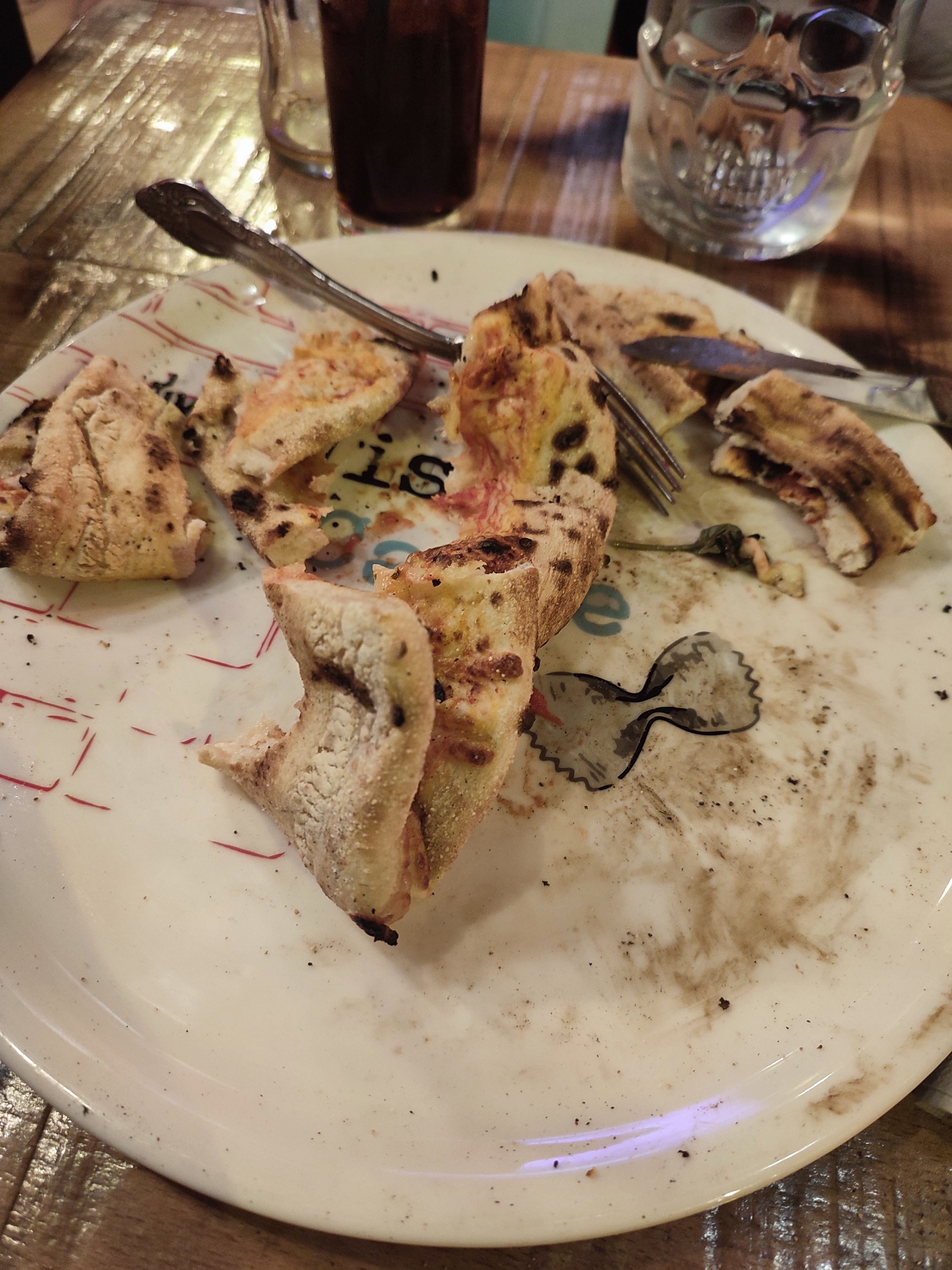 Pizza soit dit napolitaine contemporaine crue avec beaucoup de mozzarella industrielle, basilic cru et de la semoule.J'ai demandé de la changer et la deuxième ete pire. Tiramisu avec un léger gout de café et un gout trop bizarre de mascarpone, stocké dans un bac en plastique. Je parle pas du temps d'attente ni des serveurs difficiles à identifier. Vaisselle sale.
