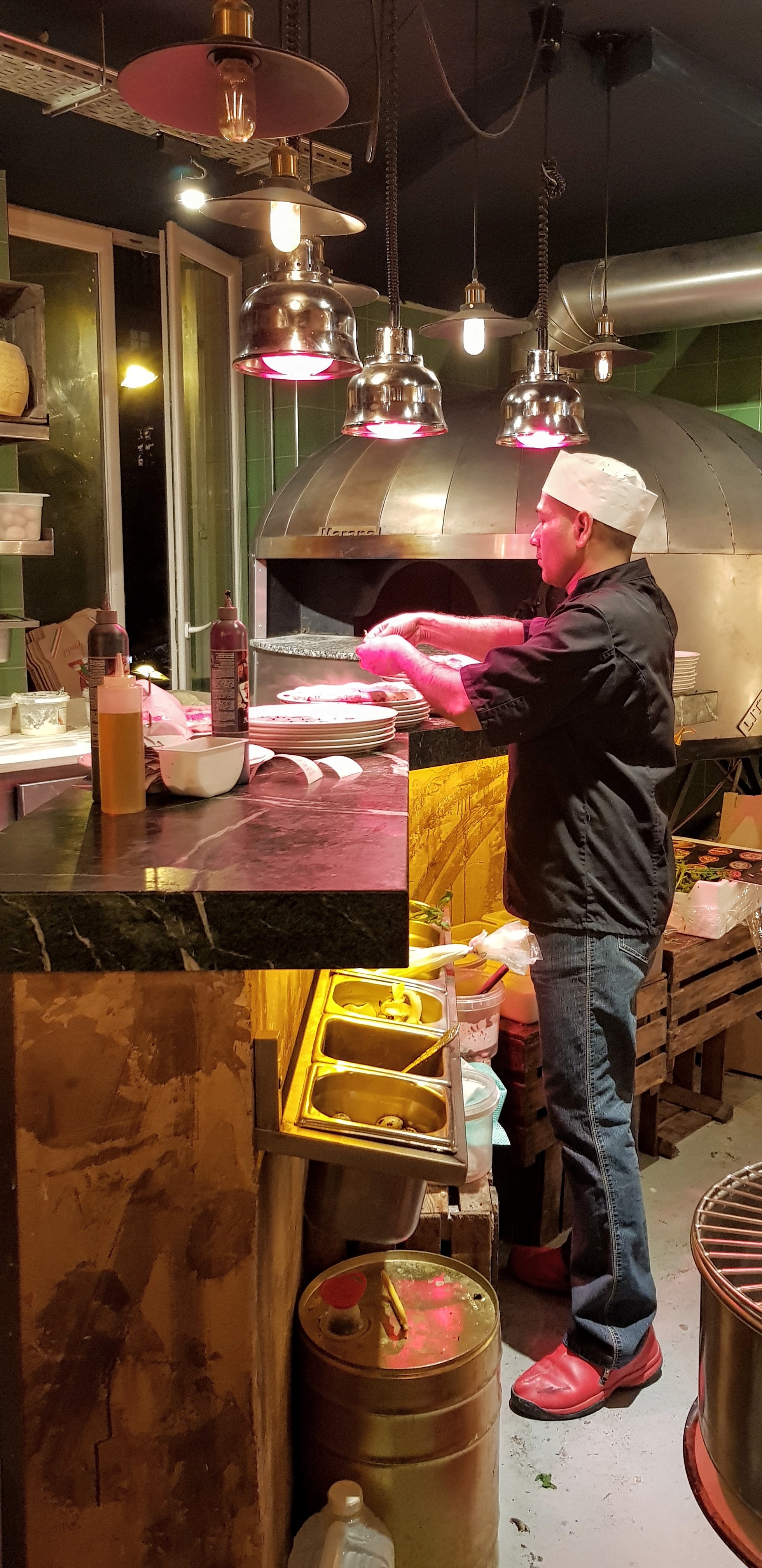 Un chouette restaurant avec une décoration soignée De très bonnes pizzas Un service impeccable de Lino Bonne ambiance pour un repas d’après marathon