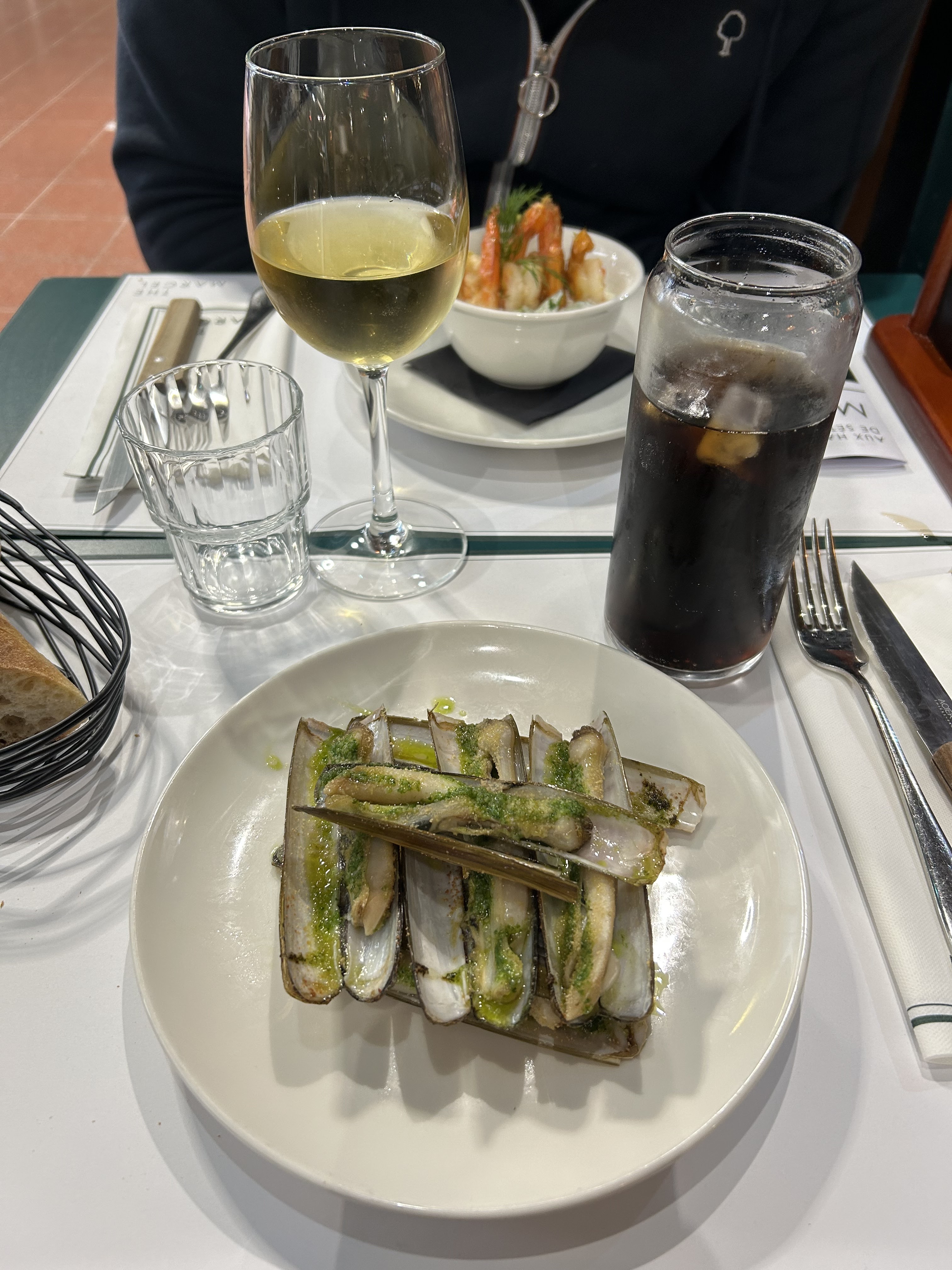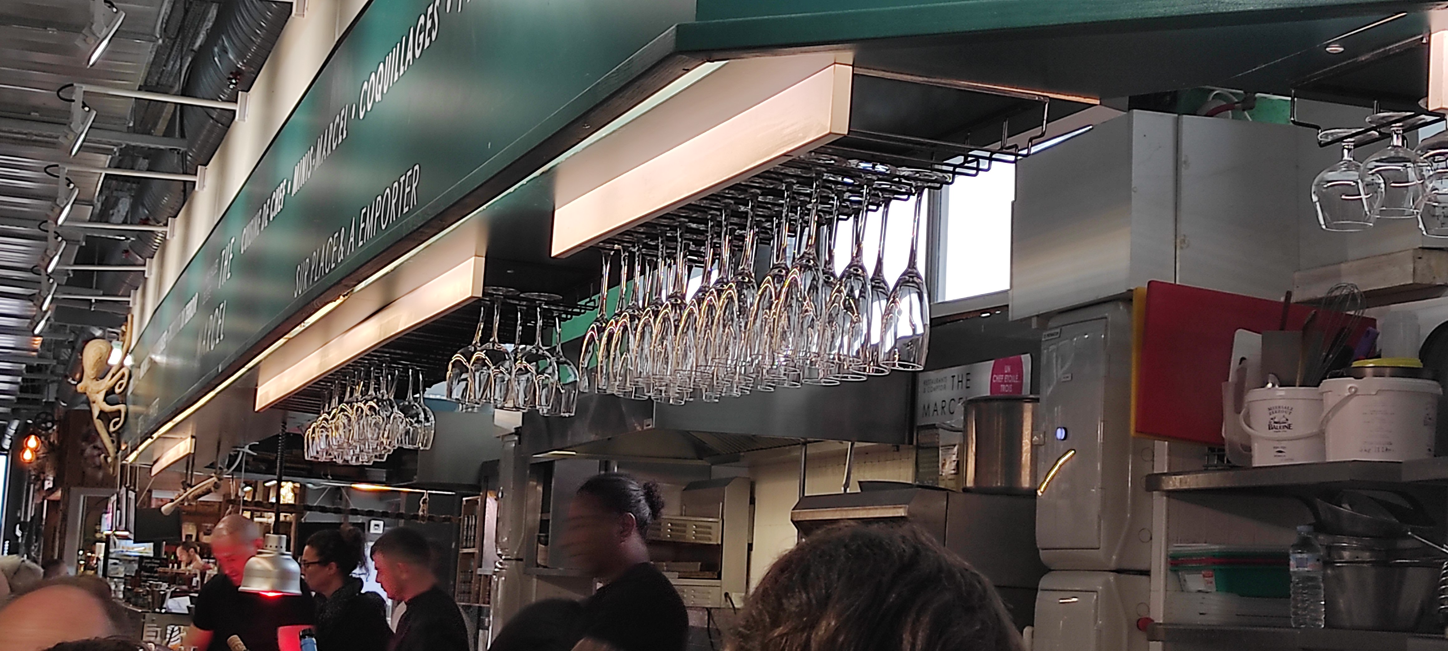 Ambiance des halles toujours sympa pour ceux qui aime ça. Le serveur très gentil et poli qui sait dire avec gentillesse de débarrasser notre table des coquillages que nous avions mangé.