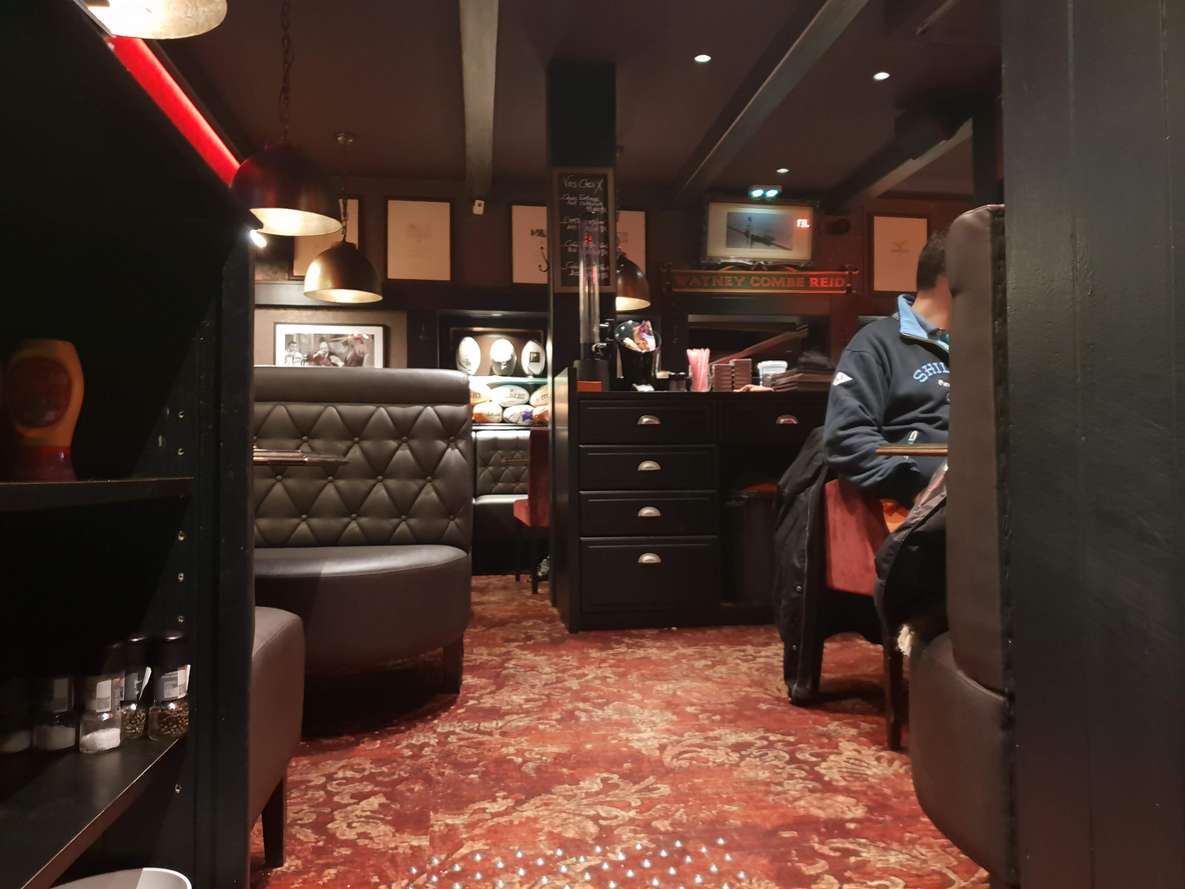 Brasserie/Pub à l'ambiance et déco anglaise. Les deux serveurs qui ont assuré le service ont été très charmants. Nous avons également dîner, 3 hamburgers fait maison à la fourme d'amber...un régal. Pour prendre un verre ou dîner, le cadre et l'ambiance y est chaleureux