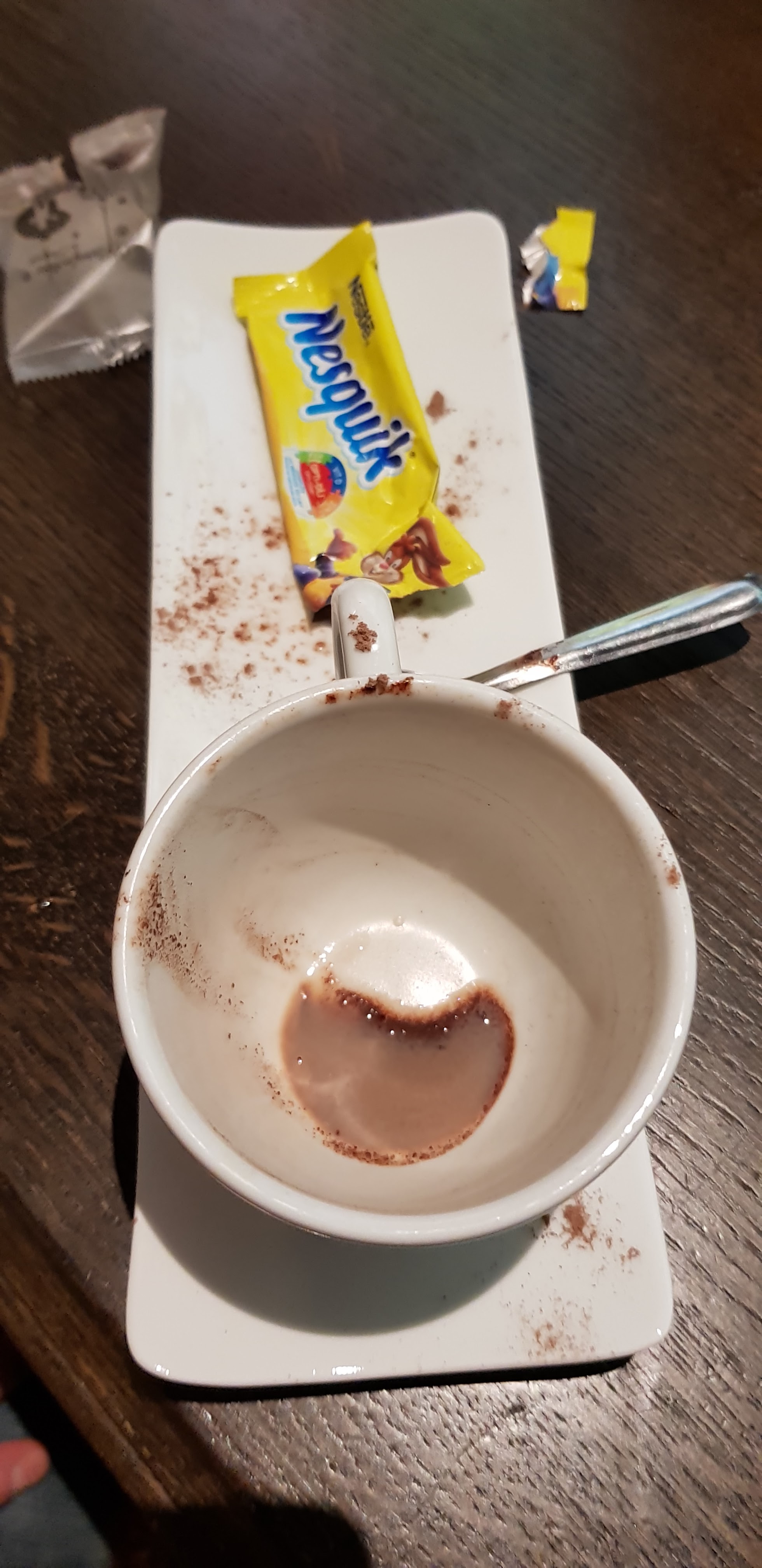 Pour un goûter évitez the office, le chocolat chaud est apporté sous la forme d'un verre de lait, dans lequel vous versez vous même un sachet de Nesquik, et le tout pour quatre euros. C'est clairement abusé.