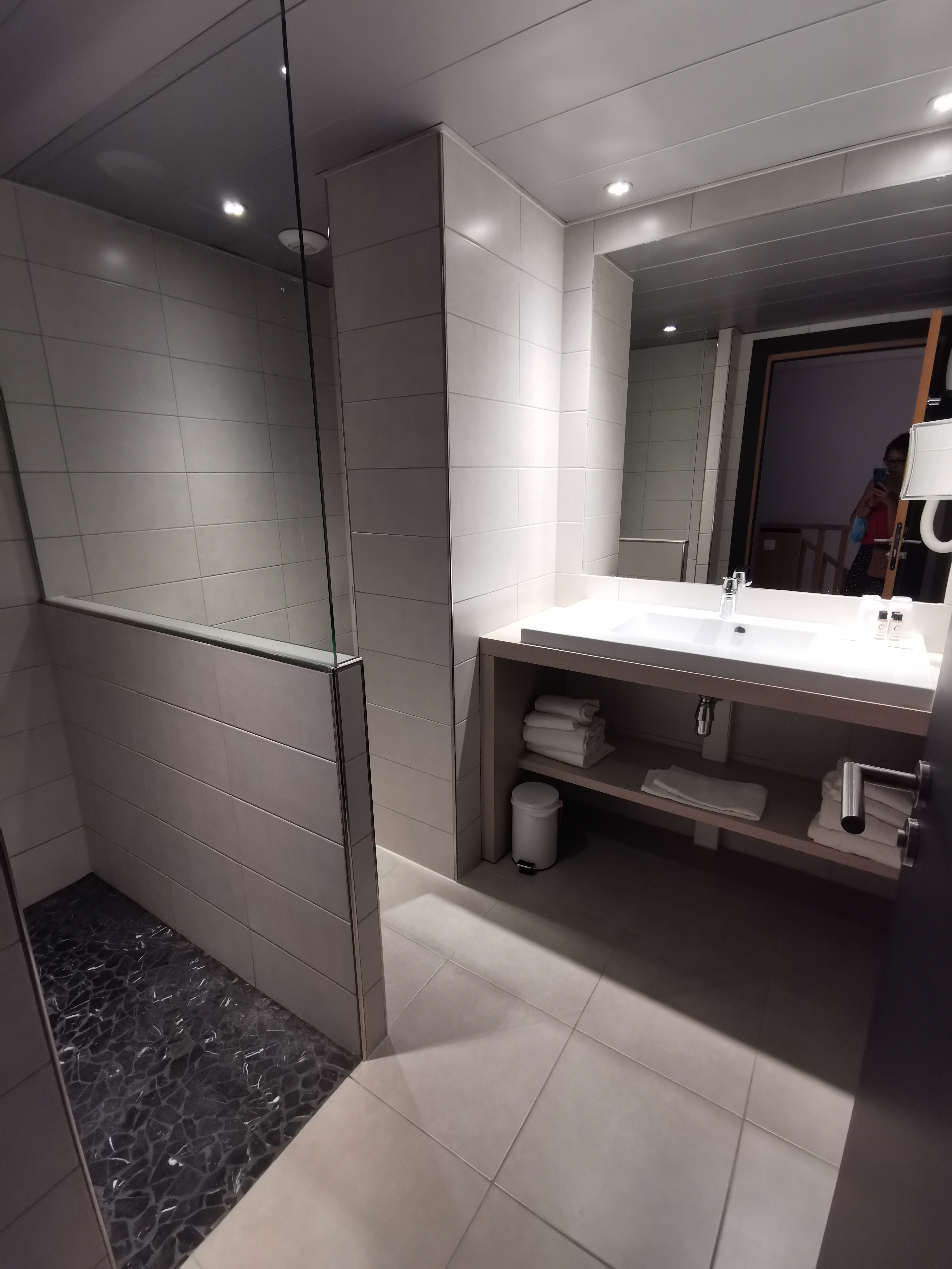 Très bel hôtel la chambre est spacieuse propre très grande douche le petit hic c est que le hammam ne fonctionnait pas et la douche sensorielle était froide je ne connais pas le principe je sais pas si c est normal mais sinon c était très sympa nous avions l espace détente rien qu à nous petit déjeuner simple mais bon et personnel sympathique tarif plus que correct pour un 3 étoiles