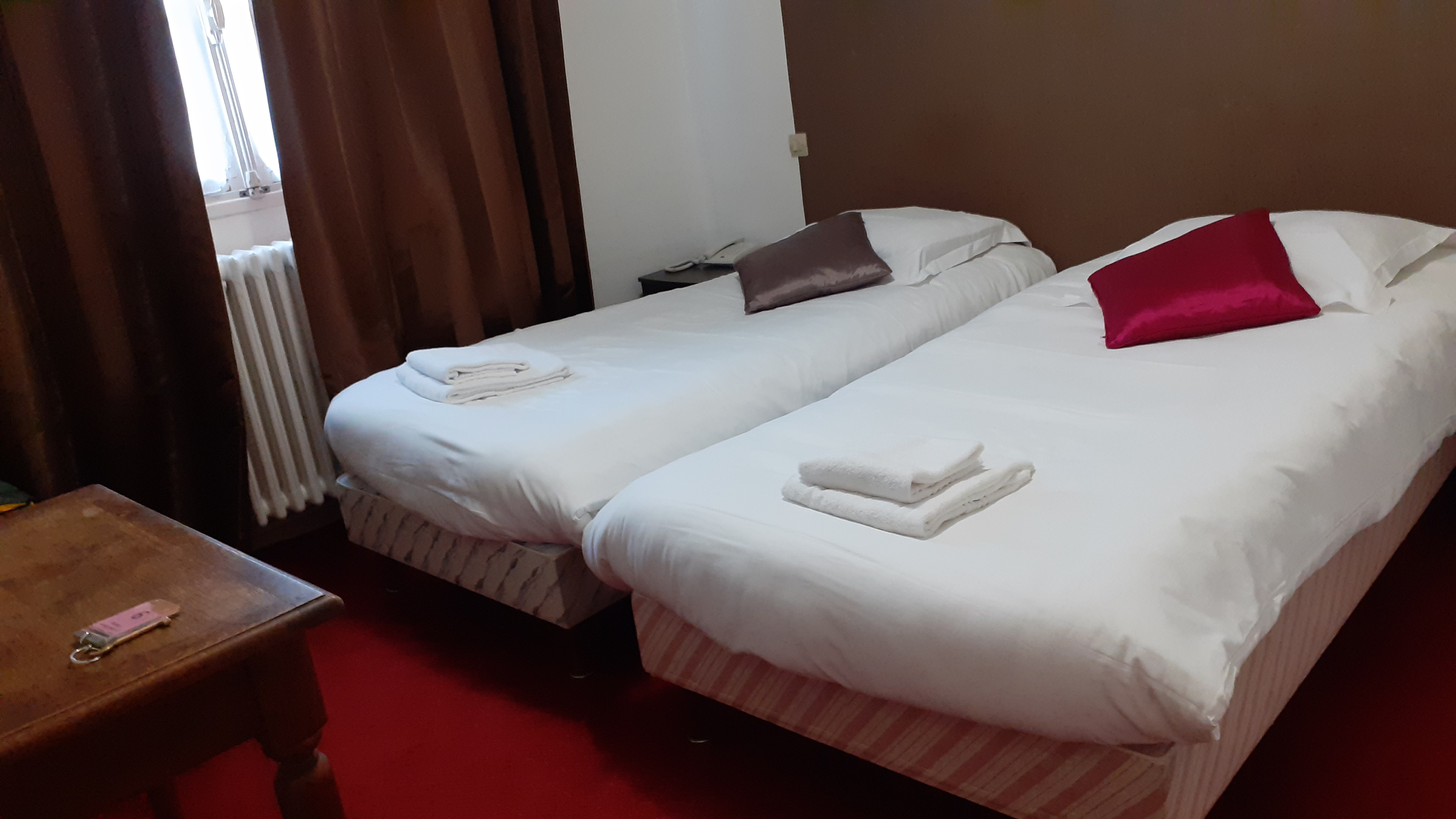 même si les chambres datent un peu , ça reste tout a fait convenable , et le repas de la soirée étape surpasse la catégorie de l'hôtel donc très bon rapport qualité prix.