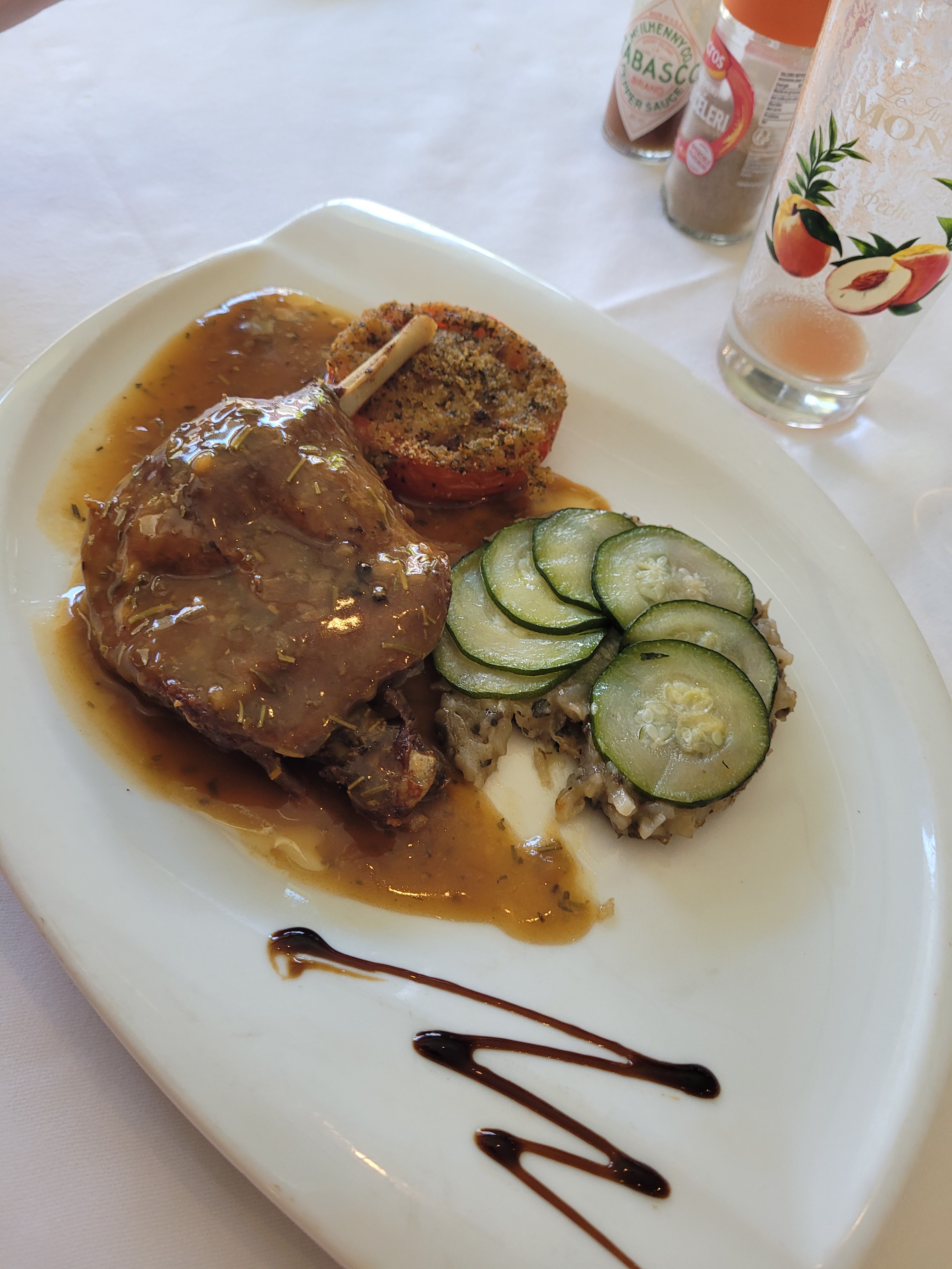 Après cette belle visite du Château de Vallandry et son magnifique jardin nous avons fait une pause déjeuné dans le restaurant du Cheval Rouge. Accueil et service tres sympathique, cuisine simple et généreuse de tradition. Le petit + c’est qu’ils veulent bien servir un peu après 13h30 ! 🕜