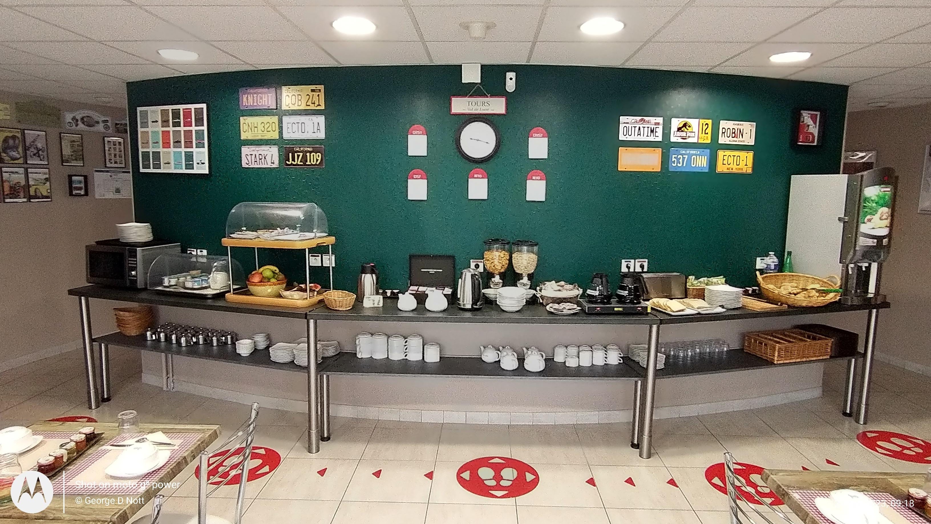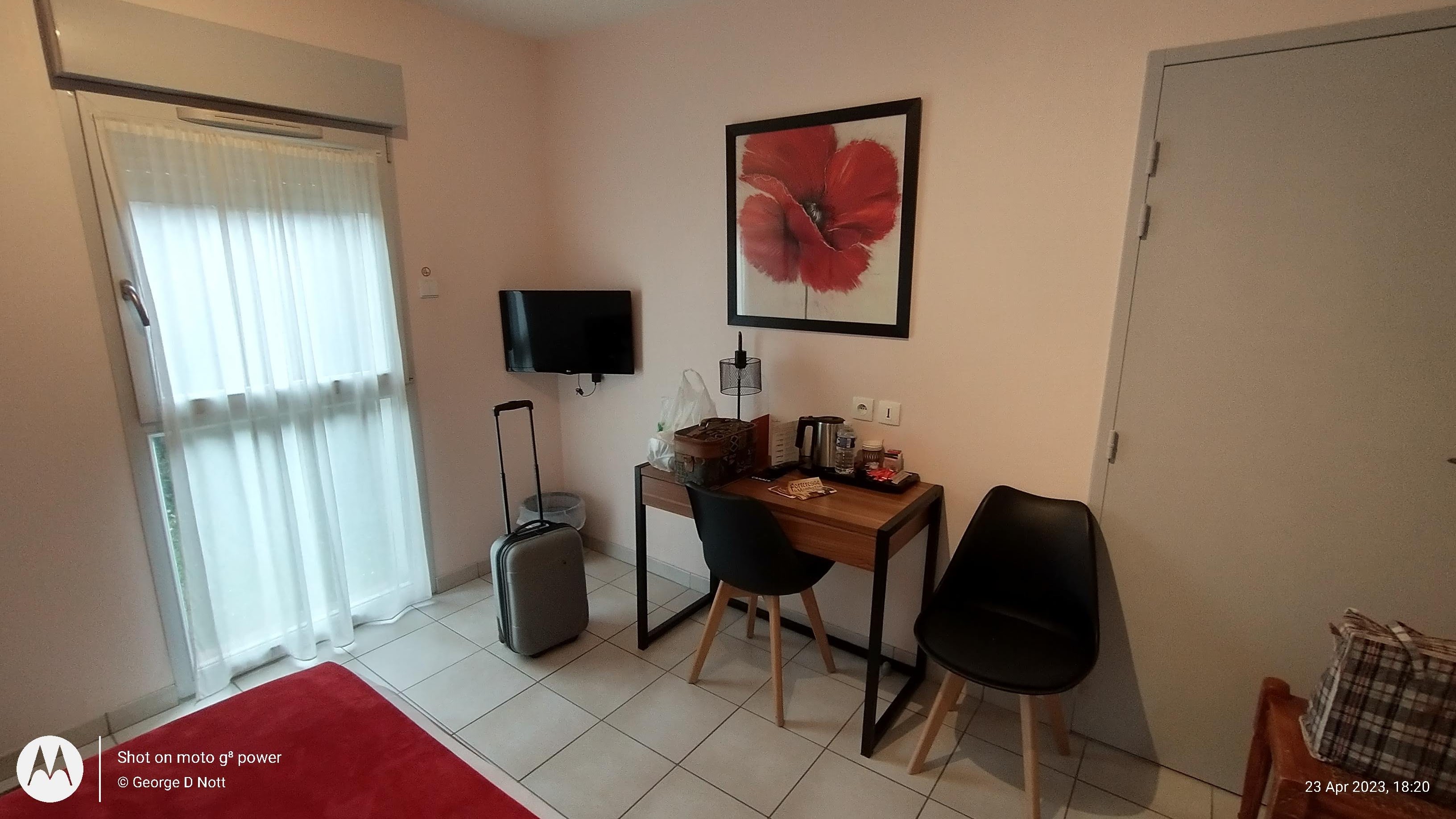 Nous avons séjourné ici pour interrompre un long voyage. En raison d'un retard du ferry et de travaux routiers, nous avons couru plus tard que prévu, nous avons donc appelé l'hôtel et parlé à Patrice. Il était très serviable et arrangeant, s'assurant non seulement que nous avions accès, mais nous laissait également des notes utiles avec nos clés et nos informations. La chambre était impeccablement propre et très confortable. Bon petit déjeuner frais avec beaucoup de choix. Le parking dispose d'un parking sécurisé, ce qui était super. Parfait pour une nuit. Nous reviendrons certainement et n'hésiterons pas à le recommander.