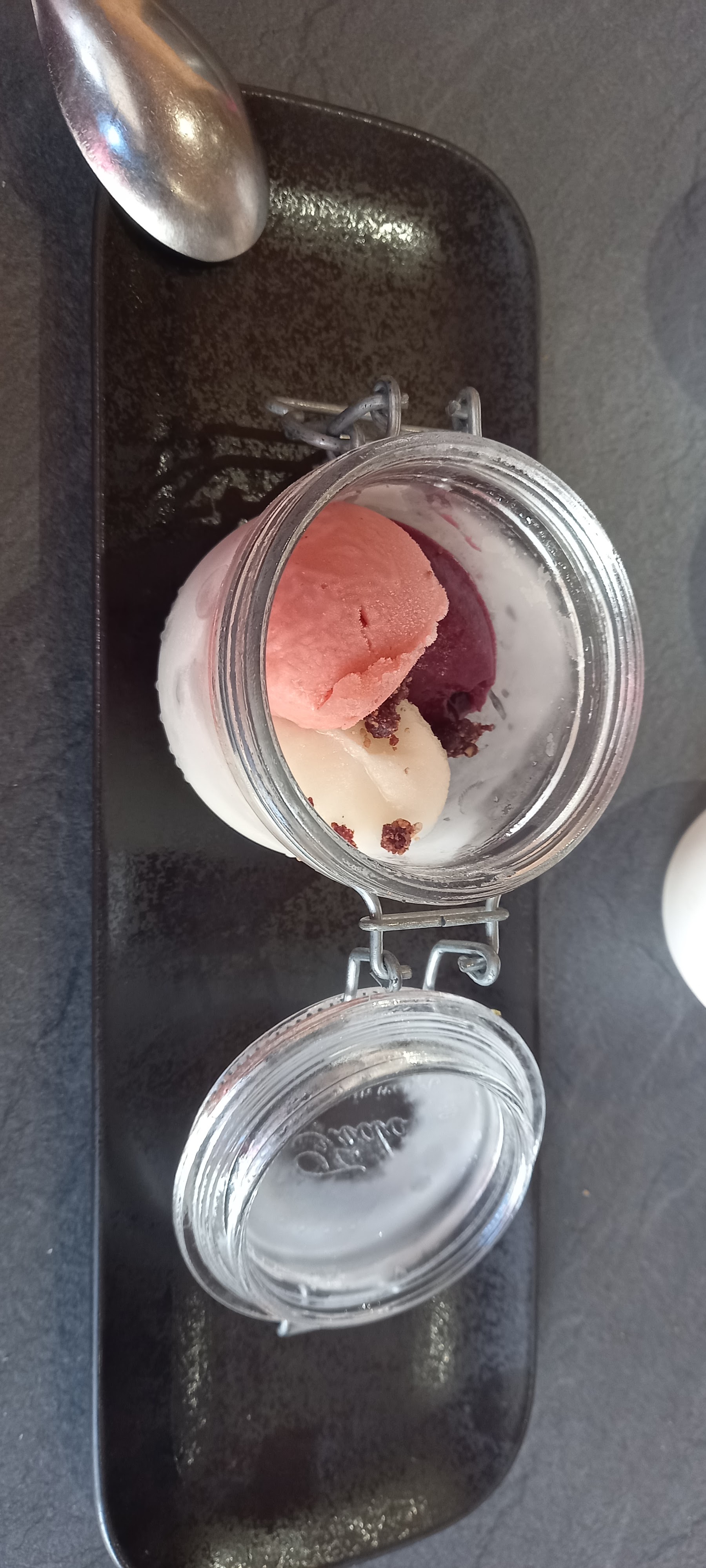 Nous appelons et arrivons à la dernière minute ce jour de pluie... Très bon plat du jour, en dessert des sorbets excellents et le thé blanc délicieux. Merci de nous très bien accueillis 🙏