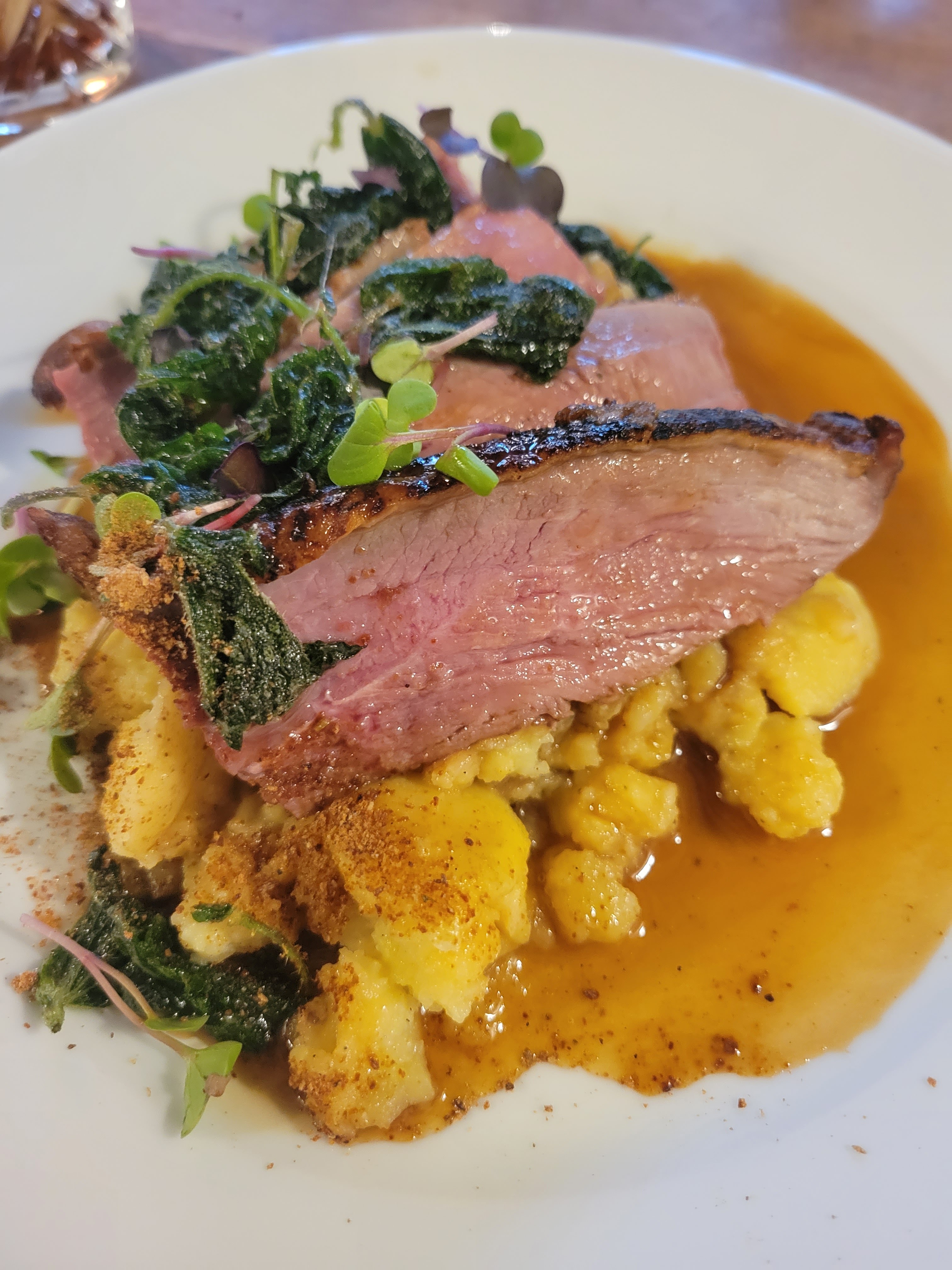 C'était notre deuxième visite et nous avons été très impressionnés lors de notre première visite, un repas en milieu de semaine en août. Nous avions hâte d'essayer le rôti du dimanche. Ainsi, par une journée d'automne plutôt humide, avec quatre amis, nous avons été accueillis avec des sourires joyeux et conduits à notre table. Encore une fois, nous n'avons pas été déçus, la nourriture était excellente, tout comme le service et le cadre. Bravo à toute l'équipe d'avoir coché toutes les cases….Nous reviendrons..😊