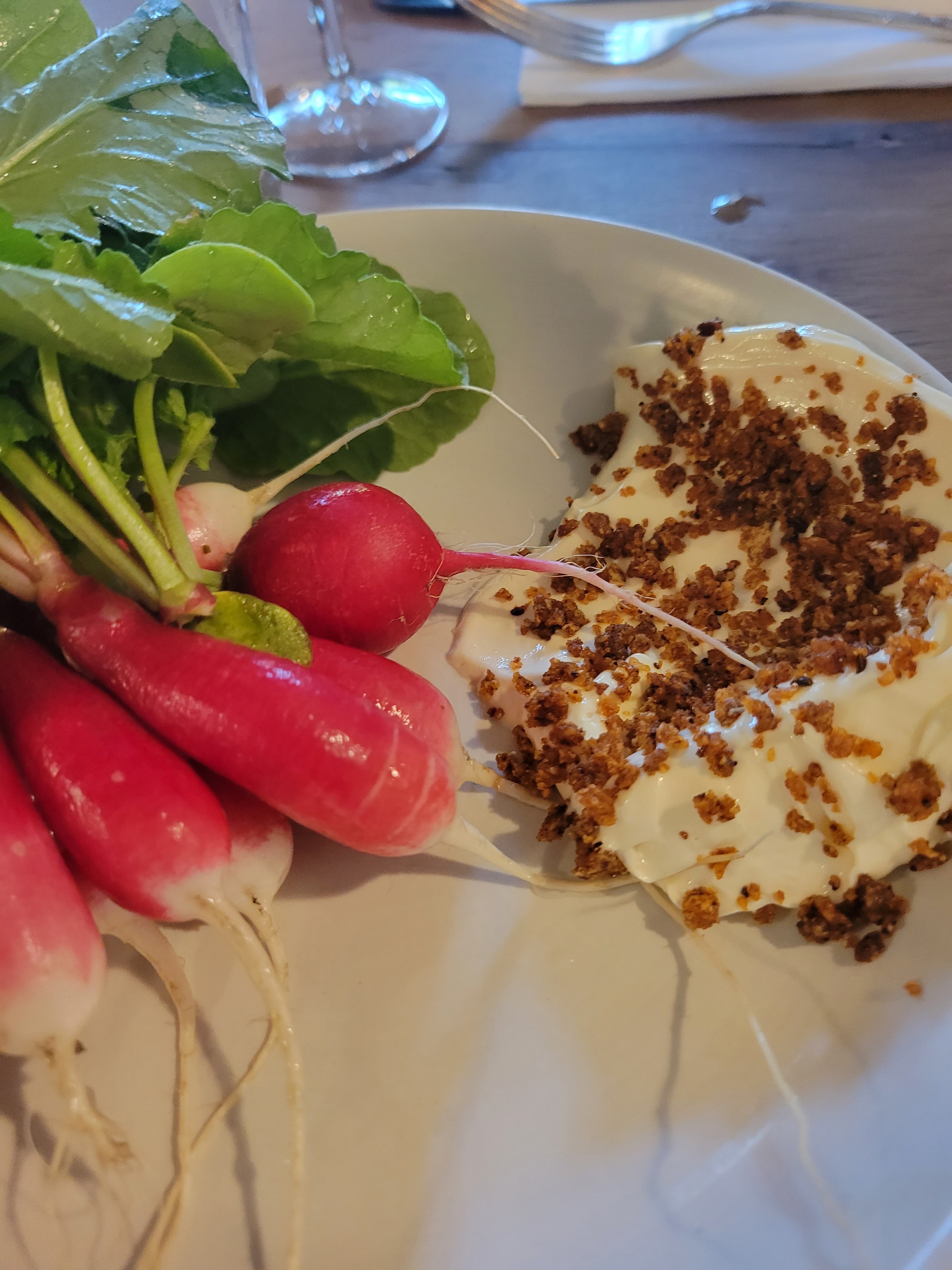 Bonjour. Nous avons vraiment passé un très agréable moment dans votre restaurant. Un accueil chaleureux, sympathique. Un service très bien avec une personne qui prend son temps pour nous expliquer la carte. Le chef nous a régalé et a su ajouter un petit geste d'excuse pour mes radis qui étaient pour certains un peu mous et fibreux, mais il n'est pas à l'intérieur et ne pouvait le savoir. Nous reviendrons avec des amis pour leur faire découvrir ce lieu et sa cuisine. A bientôt.