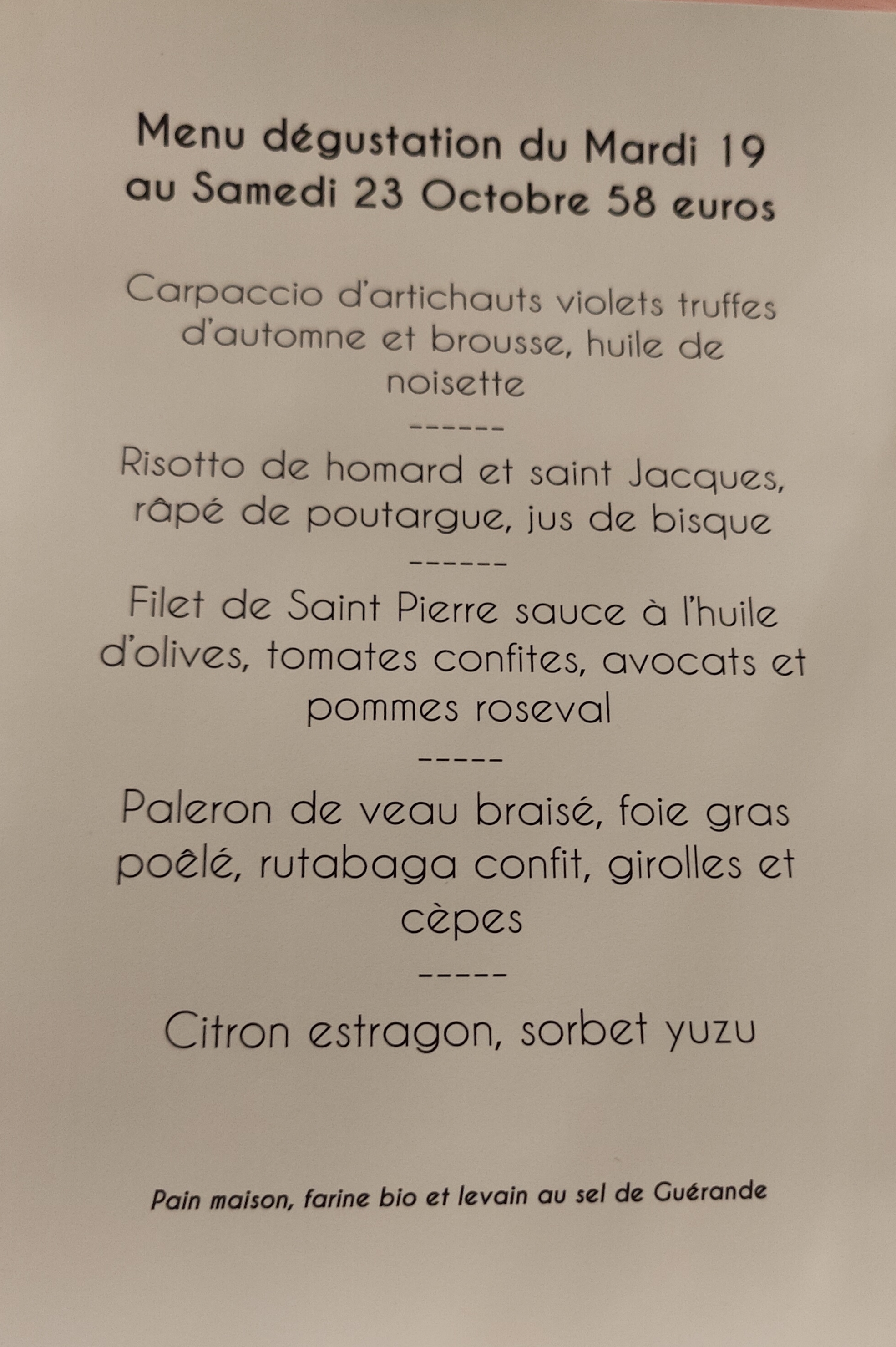 Superbe expérience, très très bon même excellent. Je recommande fortement. Un repas de l'amuse bouche au dessert un vrais régale. Très agréable