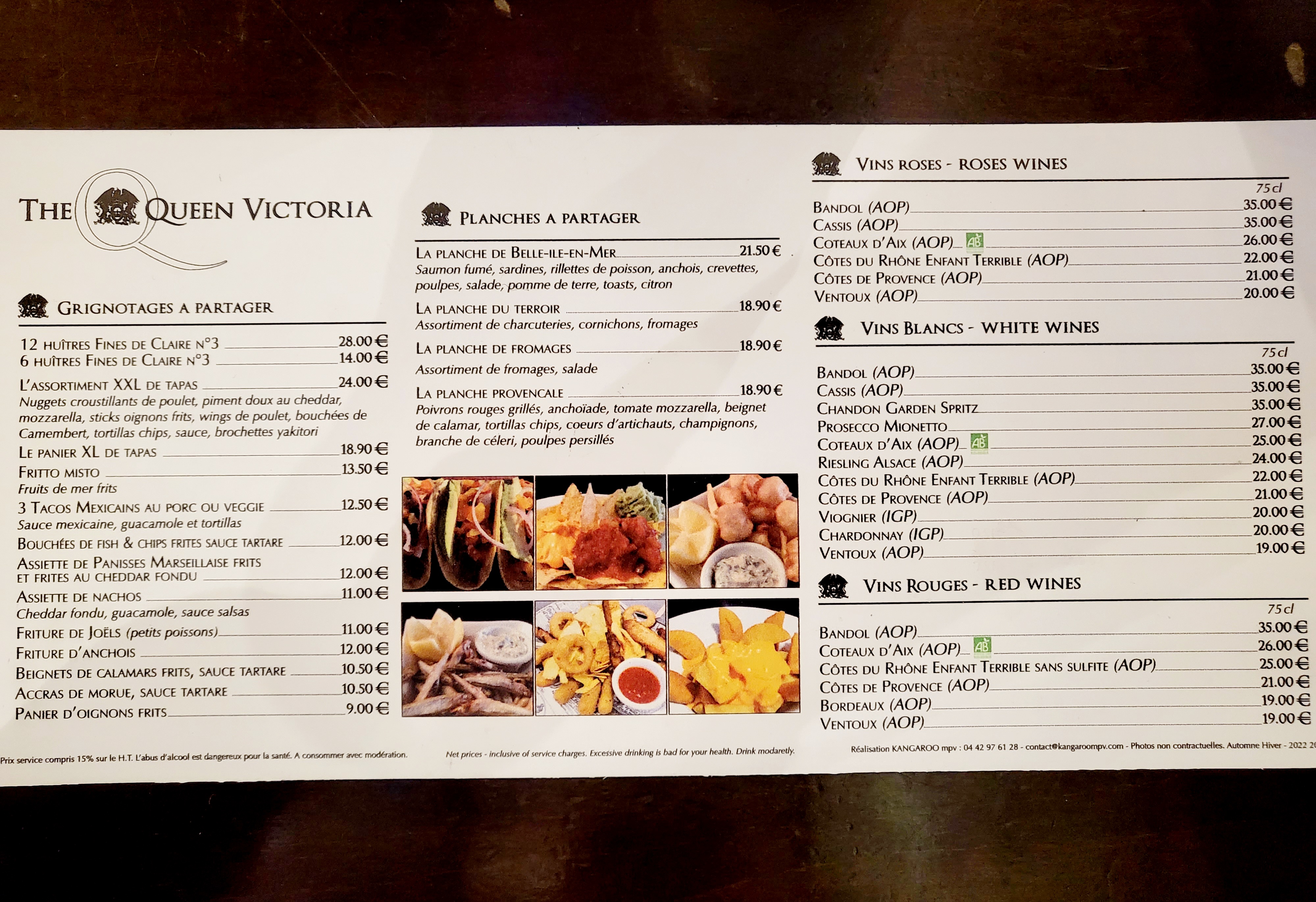 Le Queen Victoria fermera à 1h00. J'aime le chiot britannique le plus douillet de Marseille pour les longs ongles effrayants d'une barmaid française