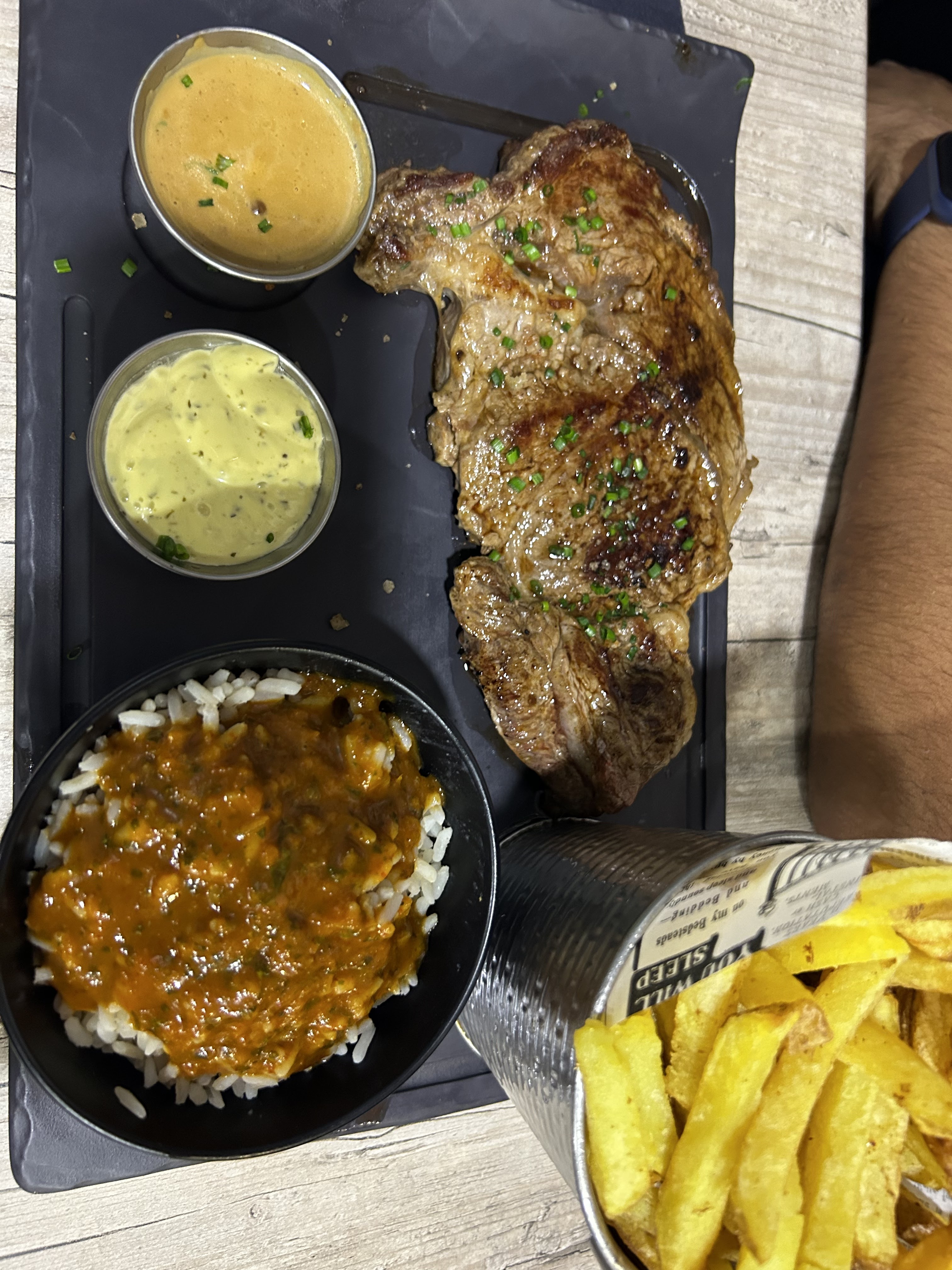 Je recommande pour les amoureux de viande ! C’était très bon et propre. Gros coup de cœur pour le rumsteck et le riz piquant 👌🏼👌🏼 Je reviendrais