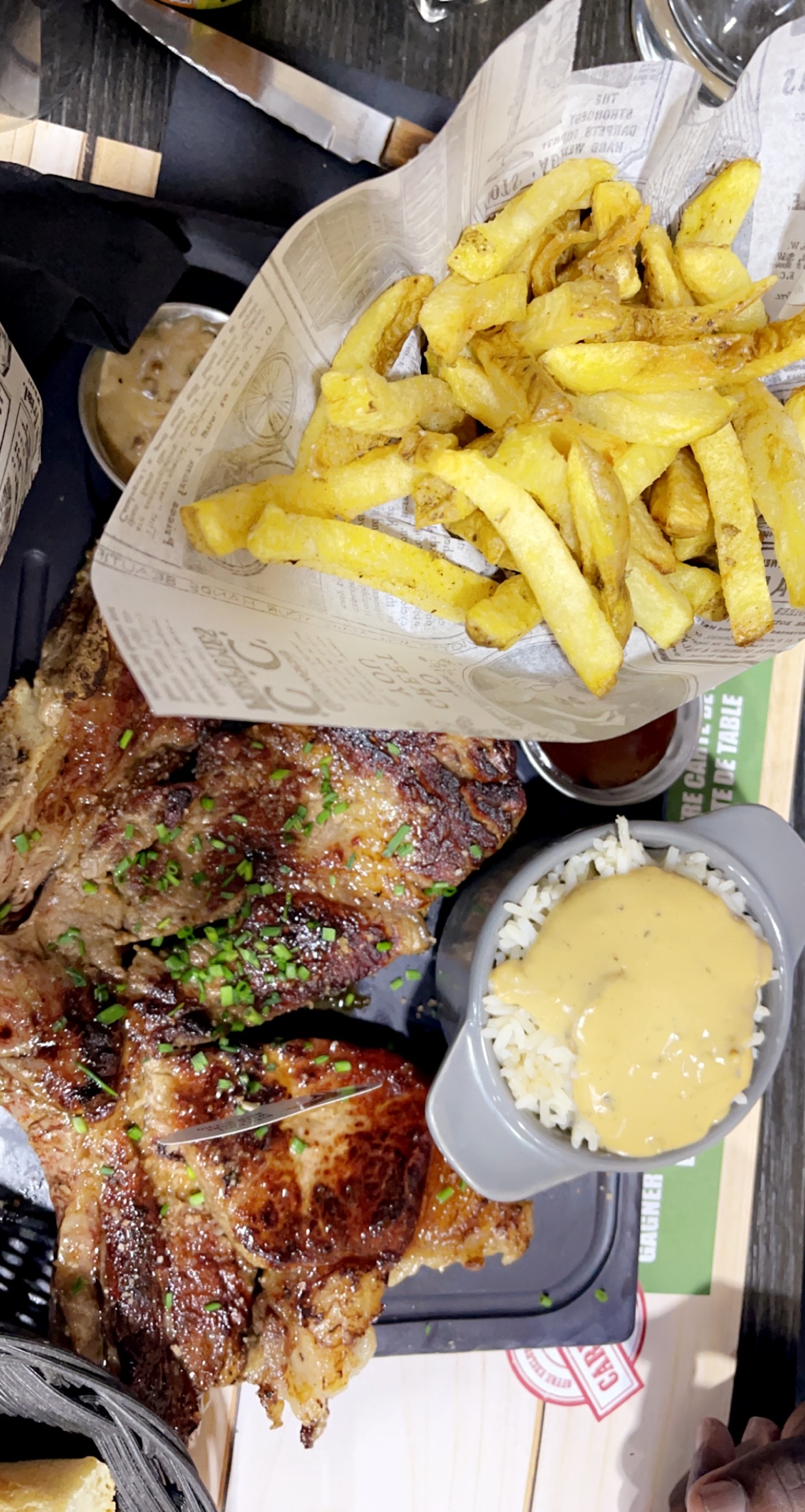 La viande est à la hauteur, de ce qu'on en dit succulente et tendre. Un peu déçu des frites qui ne sont pas faite maison. L'entrée et le dessert étaient bon. Un conseil pour le restaurant de Colombes venez tôt ou réserver car il y a peu de place. L'accueil y est chaleureux donc je recommande ce restaurant.