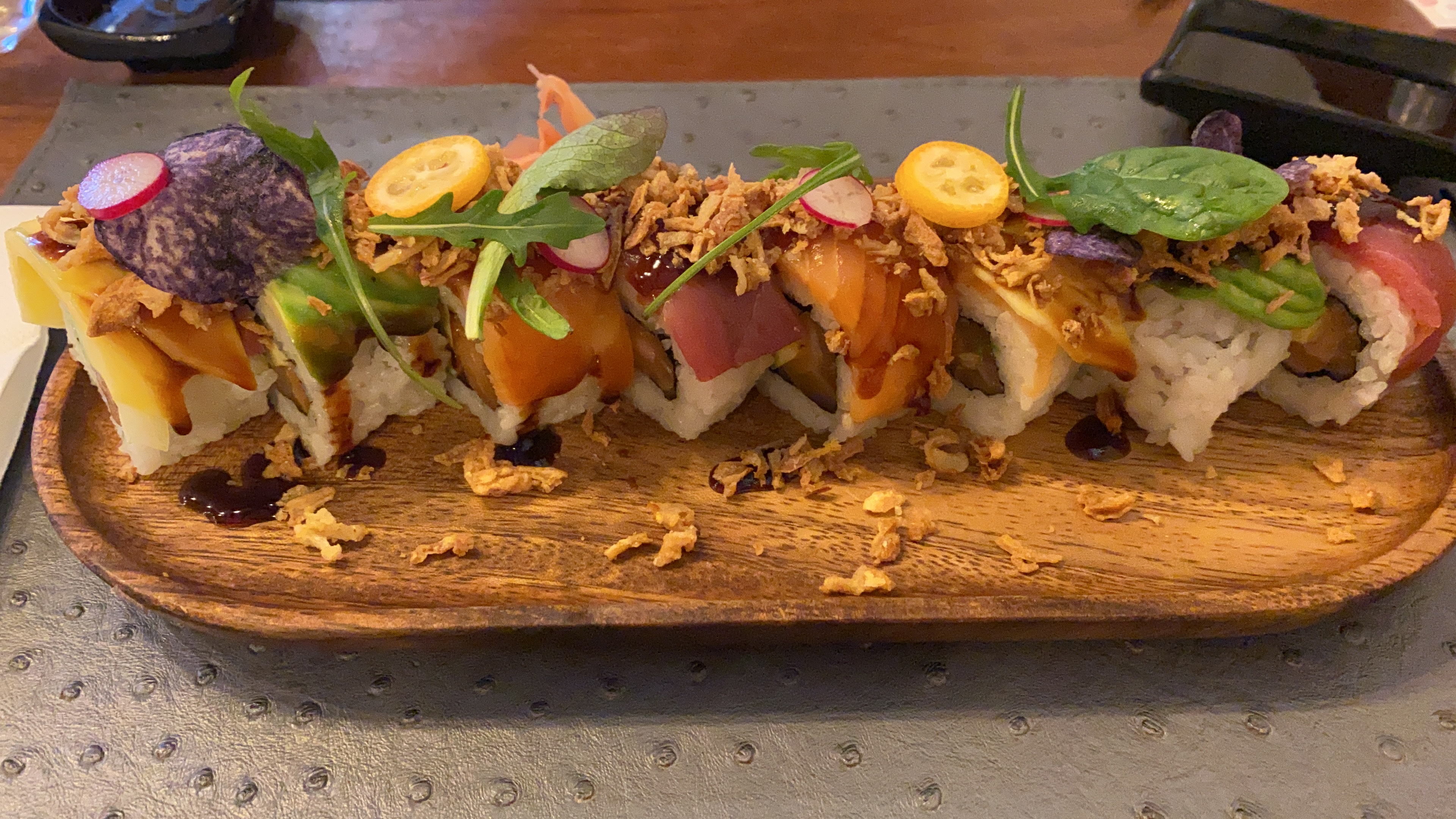Je viens de voir une assiette de sushi et j'ai eu l'impression que je devais l'essayer. Nous avons commandé la nourriture, le personnel était gentil, ils nous ont beaucoup aidés. Et wow, c'était incroyable. De bonnes saveurs, un bon prix et une grande qualité.