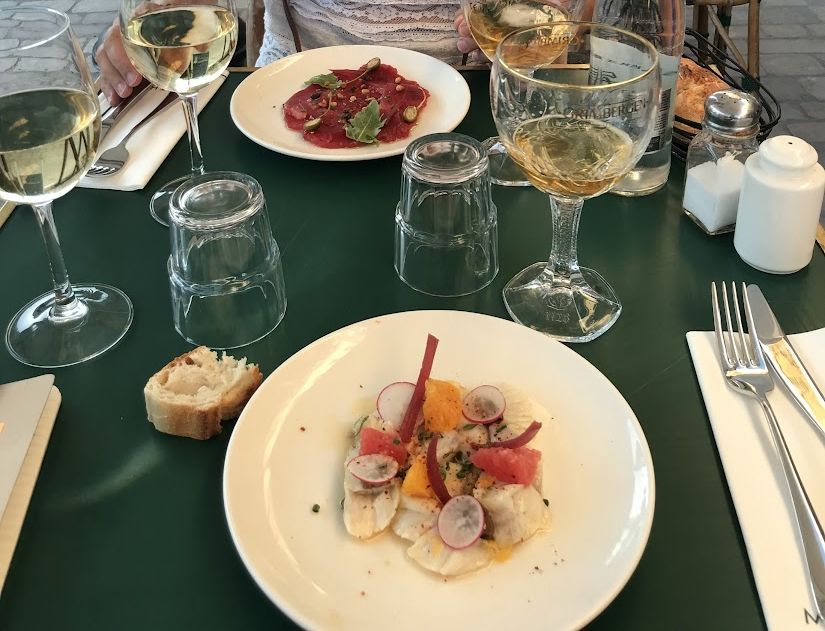 Accueil exceptionnel , accueillis par Maeva: souriante , avenante et très agréable . Nous avions réservé une table de 20 c’est à côté du canal. Nous avons pris trois entrées à partager: Des mini Marcel : salade de poulpe/2 au chorizo et une rillettes de thon. Avec une première bouteille de rosé Bandol ( 52€) ensuite nous savons pris deux côtes de bœuf une saignante, et une à point avec des frites et une salade...et une deuxième bouteille de rosé. Tout était très bon. Petit bémol: pour les tables jugées trop petites un peu bancales car positionnées sur des pavés. De plus à l’arrivée des plats servis dans de belles assiettes et sur une grande planche nous n’avions plus de place pour nos coudes afin de découper nos viandes et pour manger ....De plus lorsque la viande arrive sur la planche : faire très attention car comme nous l’avions commandée saignante et que la table était bancale du coup mon mari s’est taché son bermuda tout neuf 🤷♀️. Les digestifs ont été offerts : 2 menteuses , une croqueuse et une.....( je ne me rappelle malheureusement plus le nom) ...... Encore un grand merci à Maéva