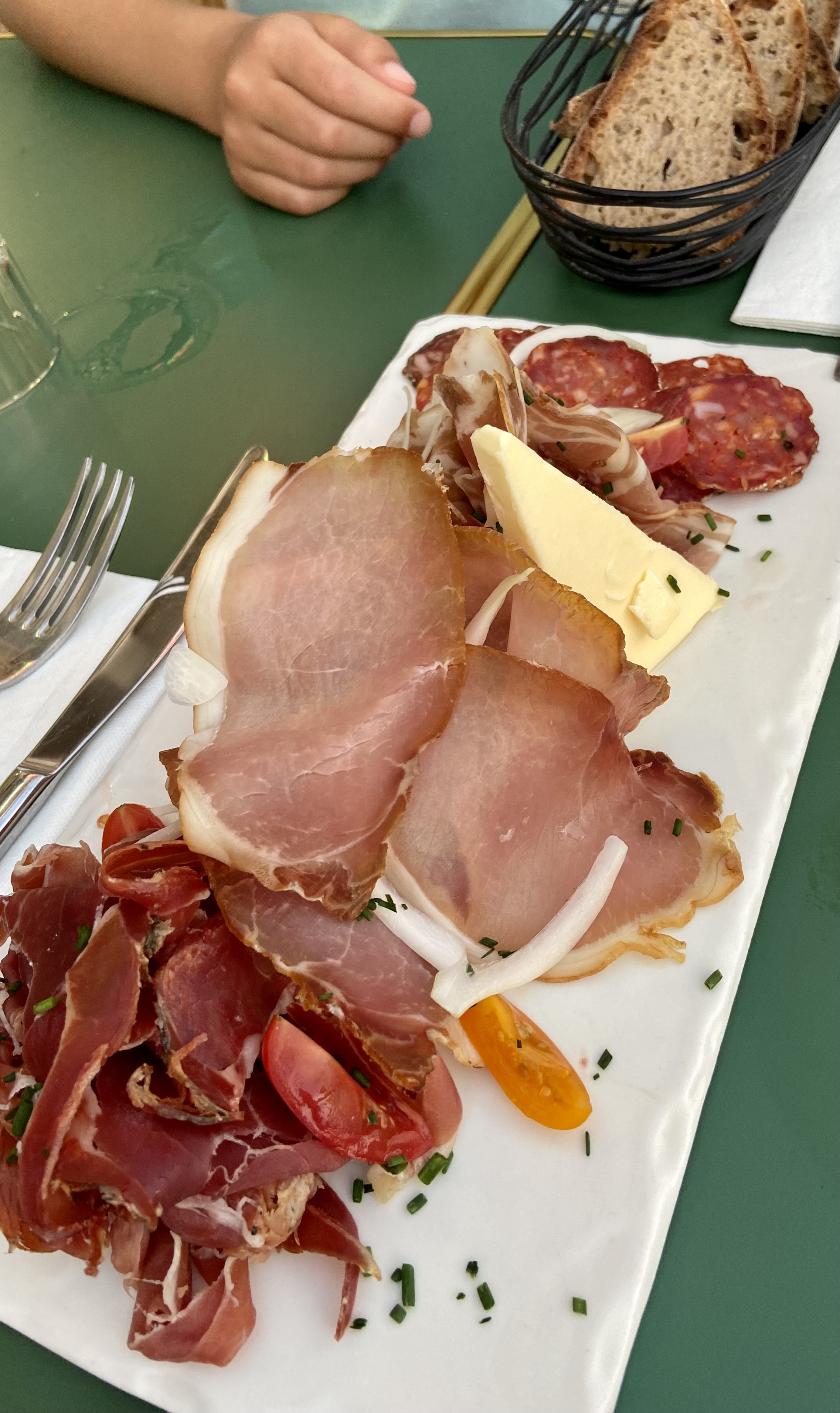 Passage a Sète et découverte.. pas de repas le dimanche midi.. donc on se rabat sur une planche charcuterie a 15€ .. bons produits mais un peu cher pour la.quantite.. le personnel est souriant