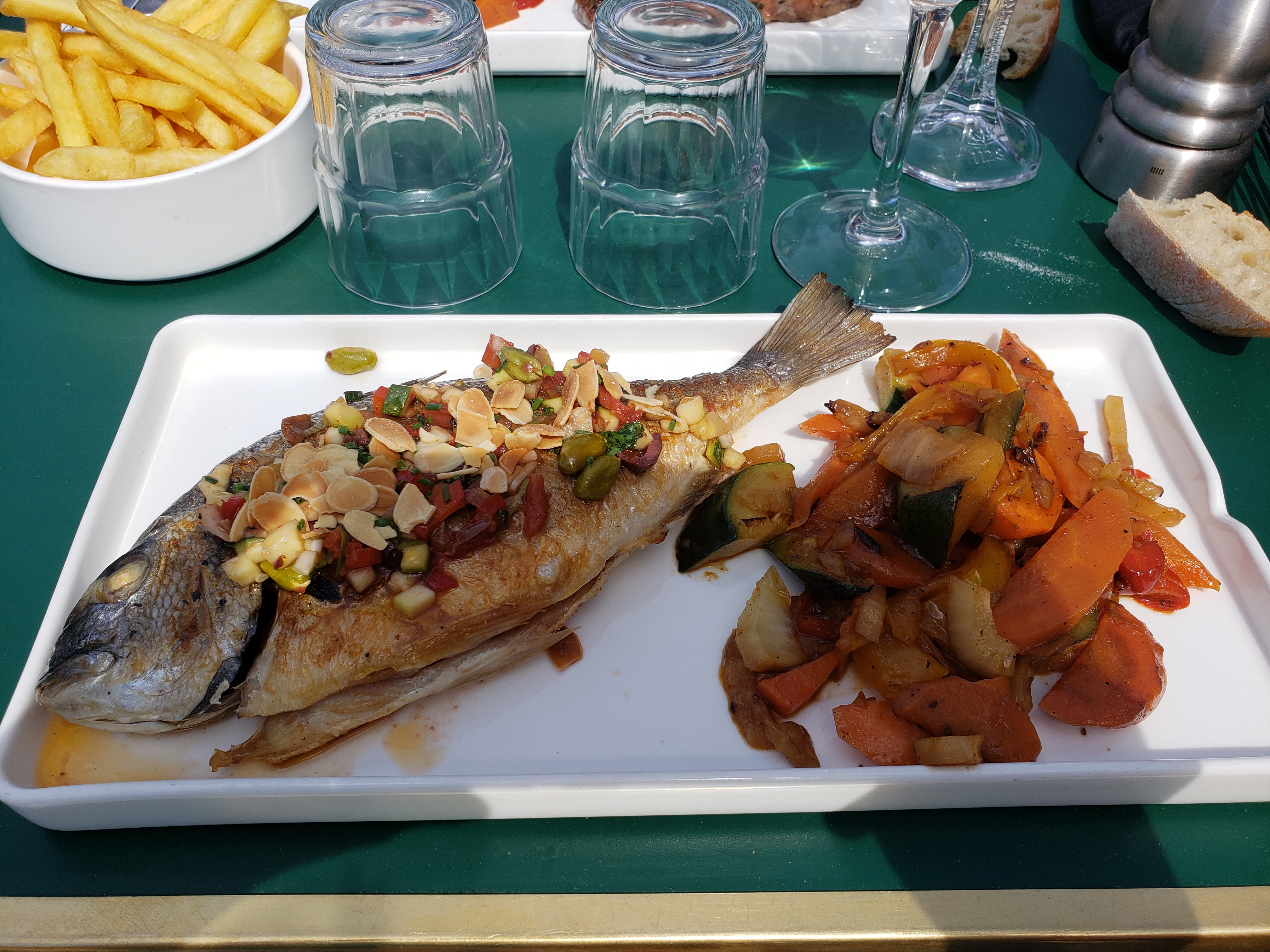 Un déjeuner sur le canal. Royal ! Une daurade succulente aux petits légumes de saison, fenouil, navet, radis... et des profiterolles... authentiques. Bravo !