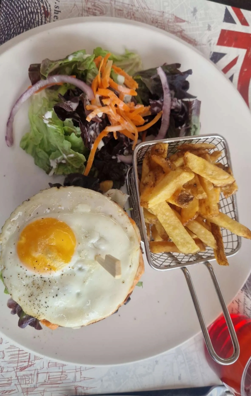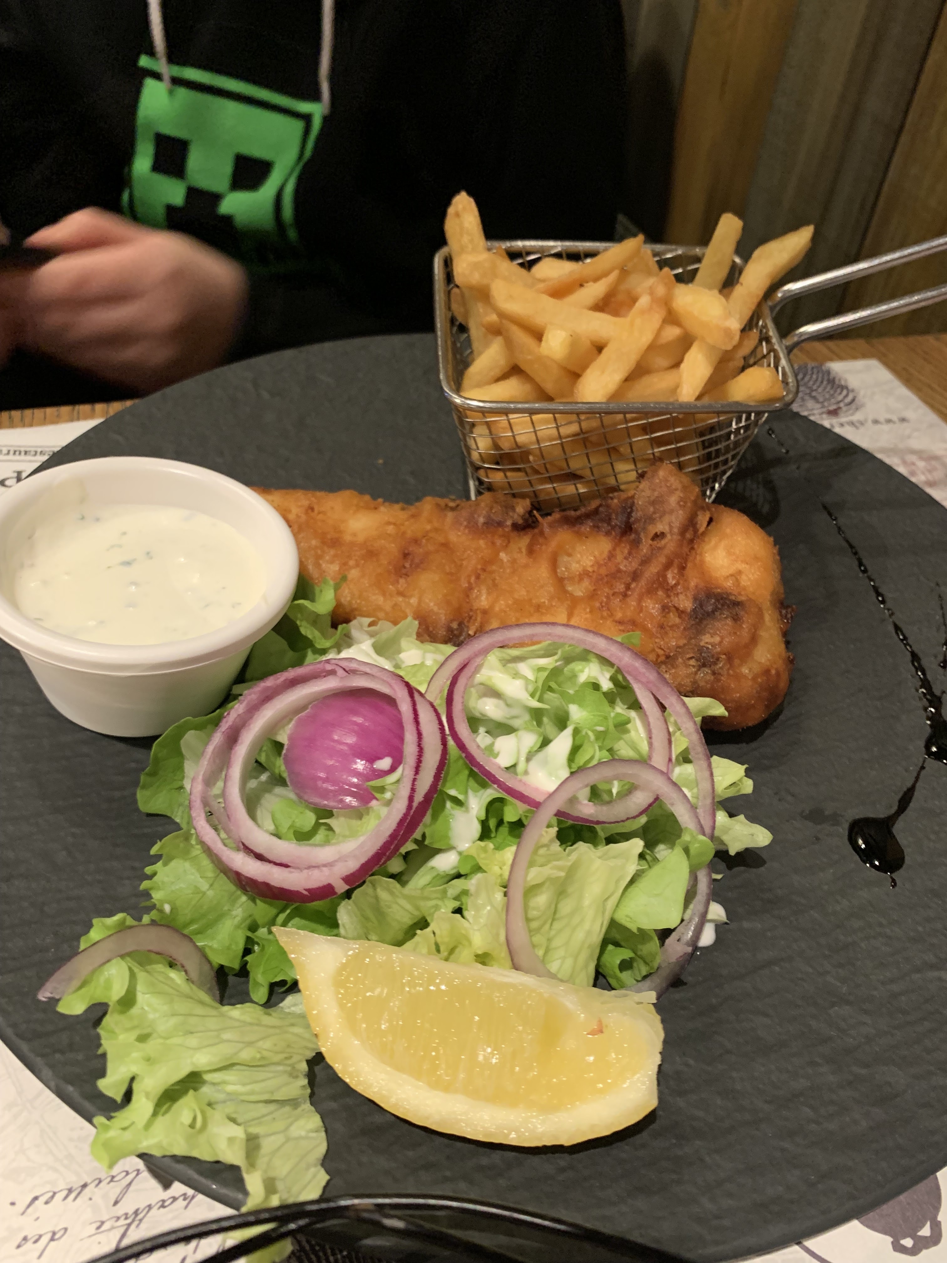 Faut pas être végétarien pour venir ici : commander un burger vege pour se retrouver avec un steak animal et 2 galettes de pommes de terre (a la place de l’œuf). Retourner l’assiette et recevoir en retour 2 œufs sur le plat, génial! Mais il est où mon burger ? Faut ni aimer le poisson : recevoir un fish and chips sans chips lol Un petit voyage au Royaume-Uni ne ferait pas de mal… 🏴