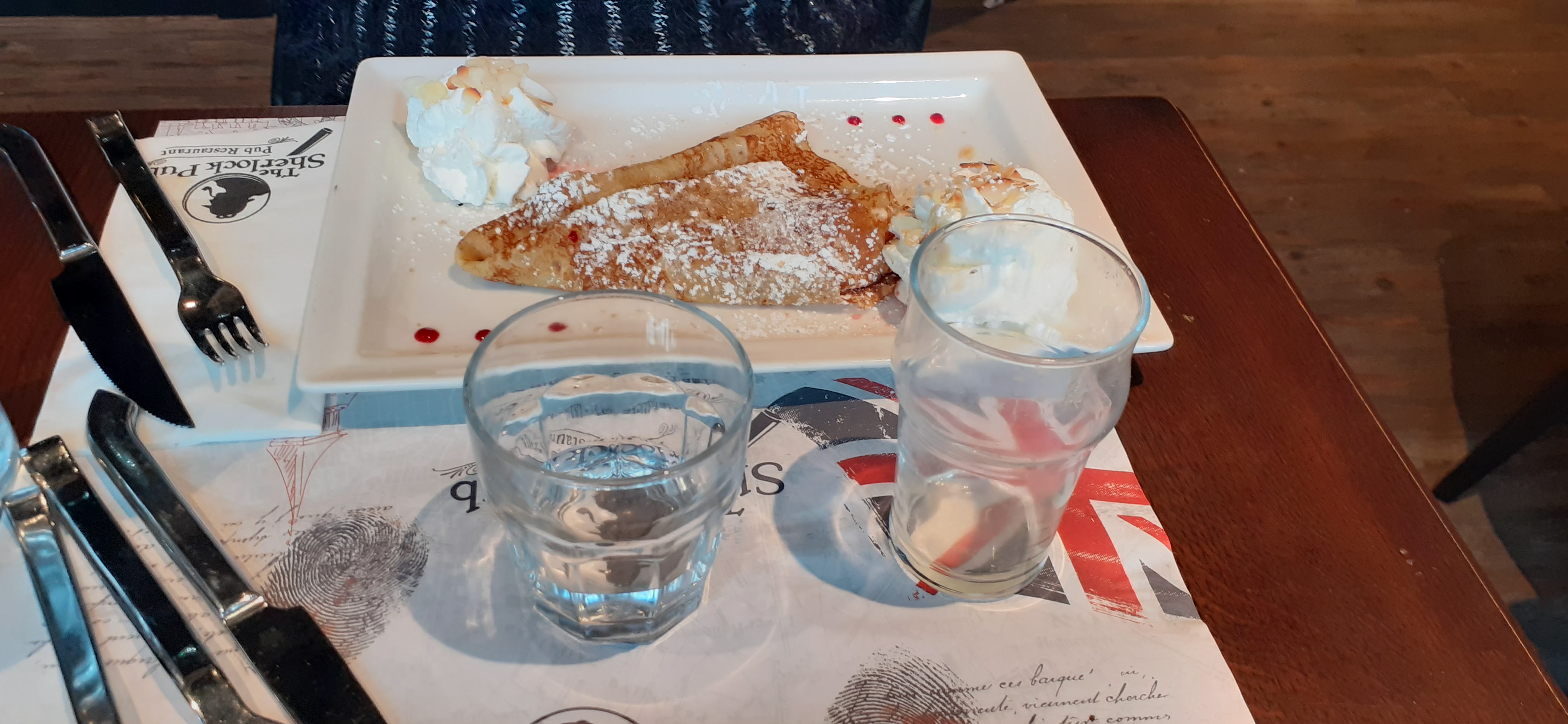 Première visite et agréable surprise ! Accueil et service de qualité. Décoration immersive nous permettant d’être plongée dans le vieux Londres de Sherlock Holmes. Nous reviendrons 😃