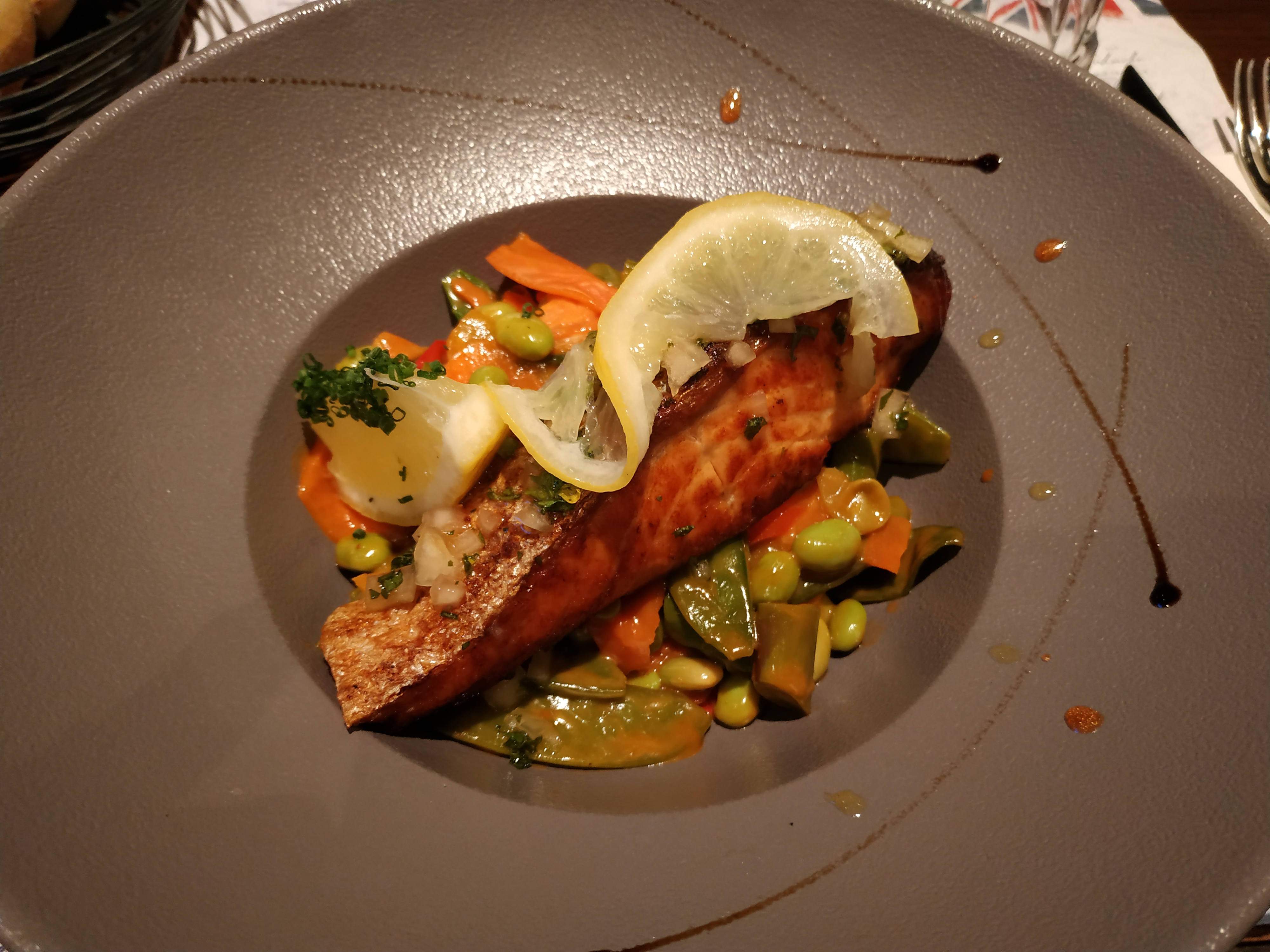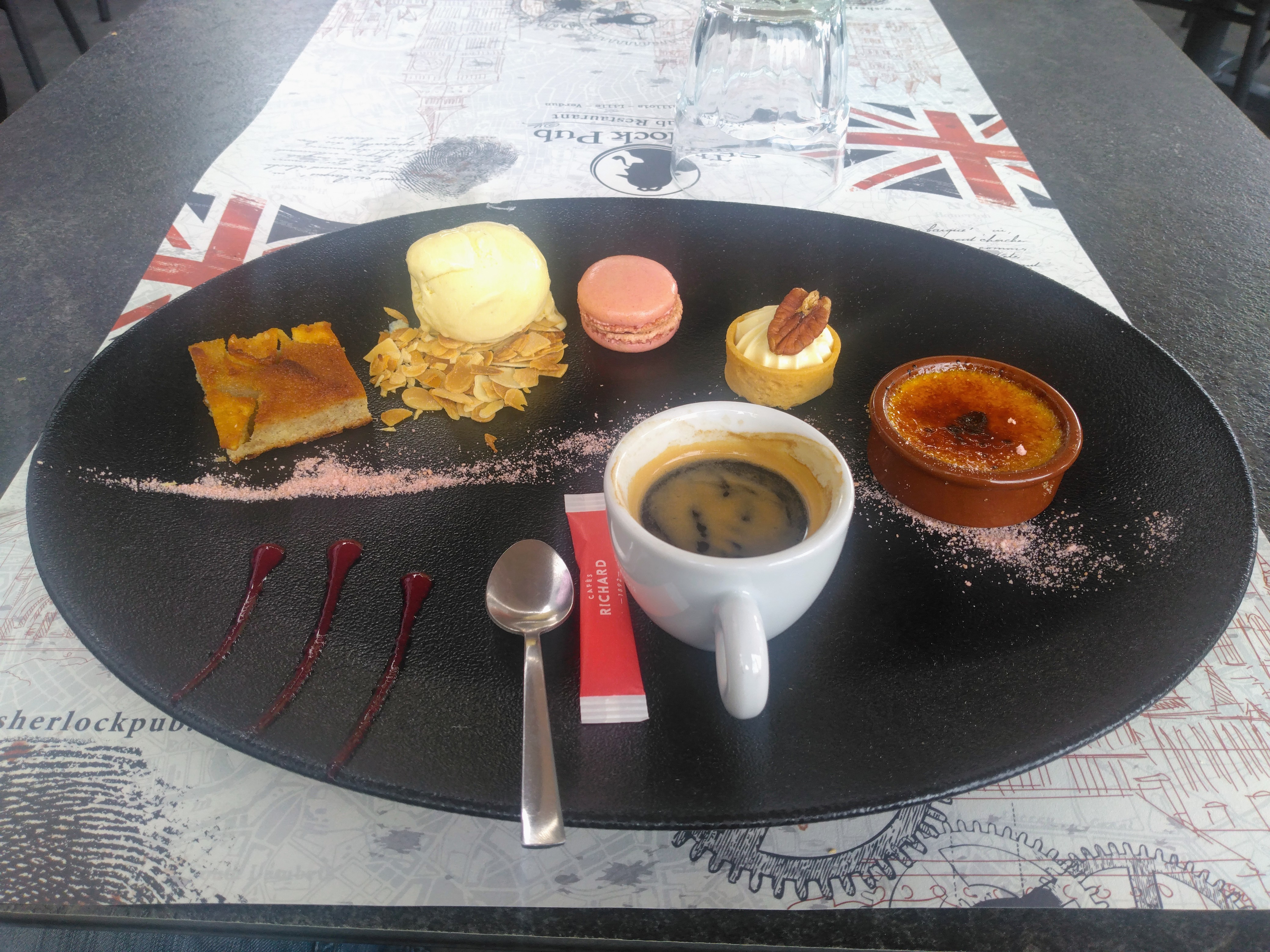 Excellent repas ! Assez copieux ! Un pavé de saumon avec des p'tits légumes 👍 et en dessert un café gourmand. Bon rapport qualité-prix. A refaire.