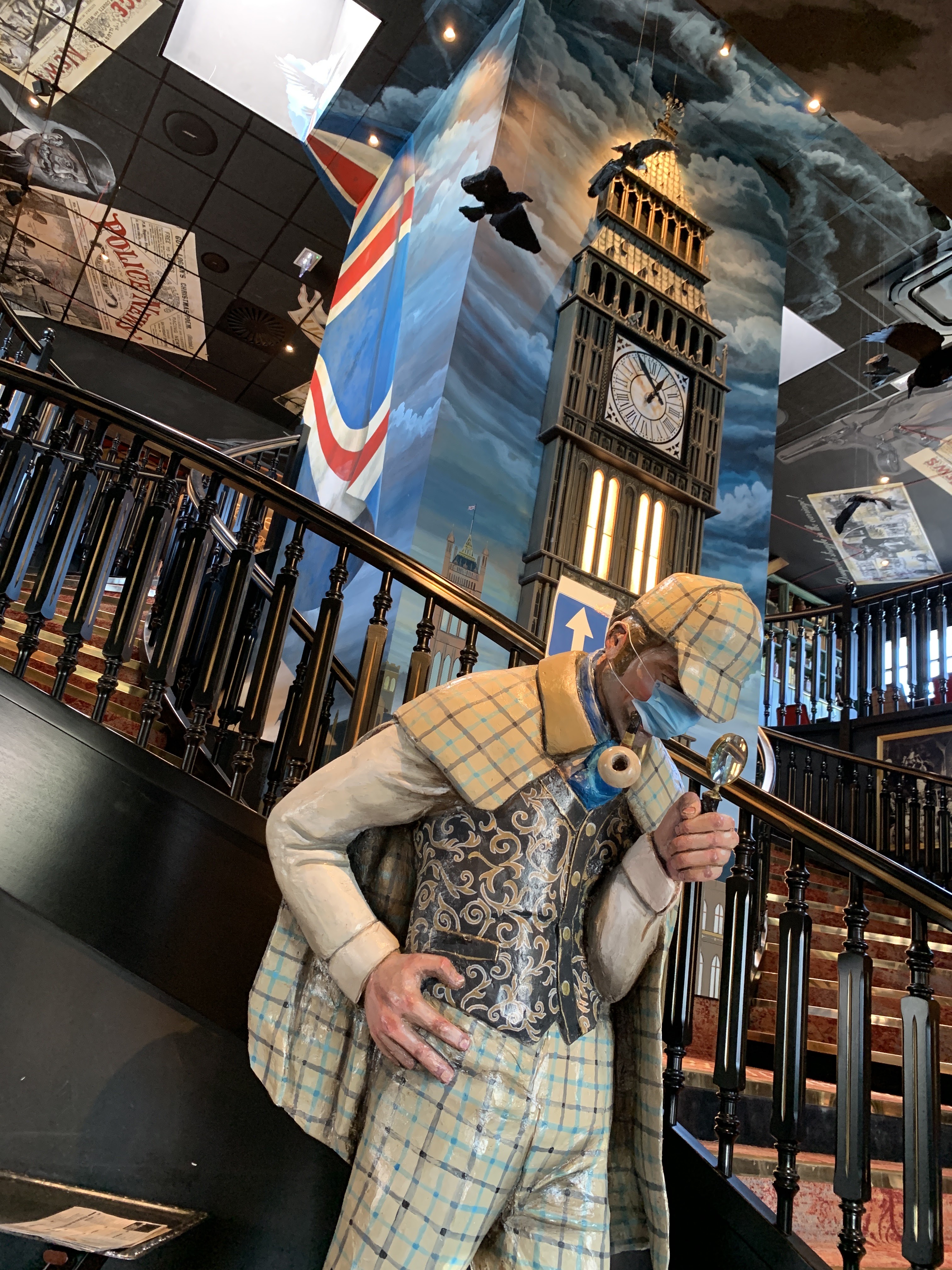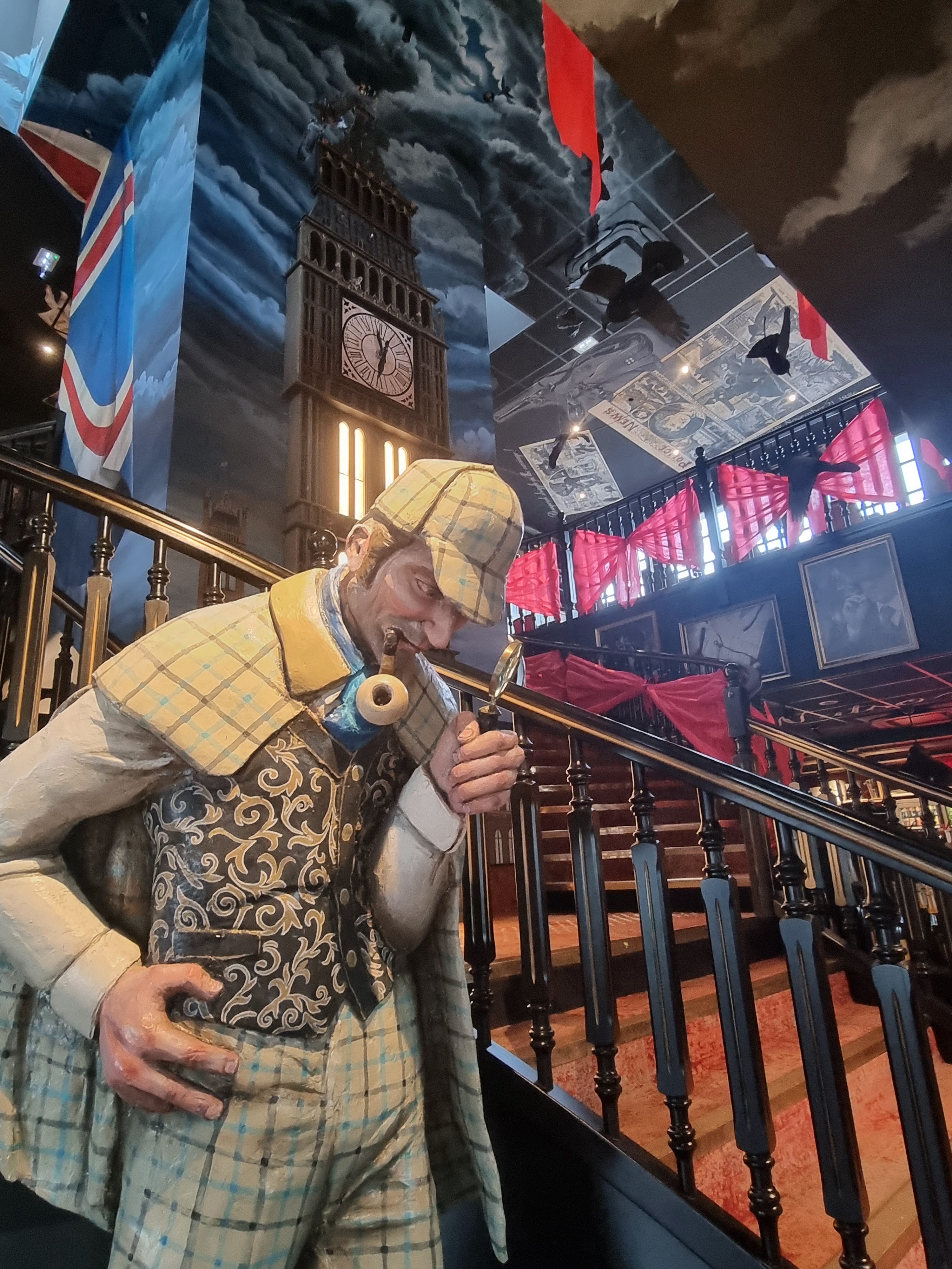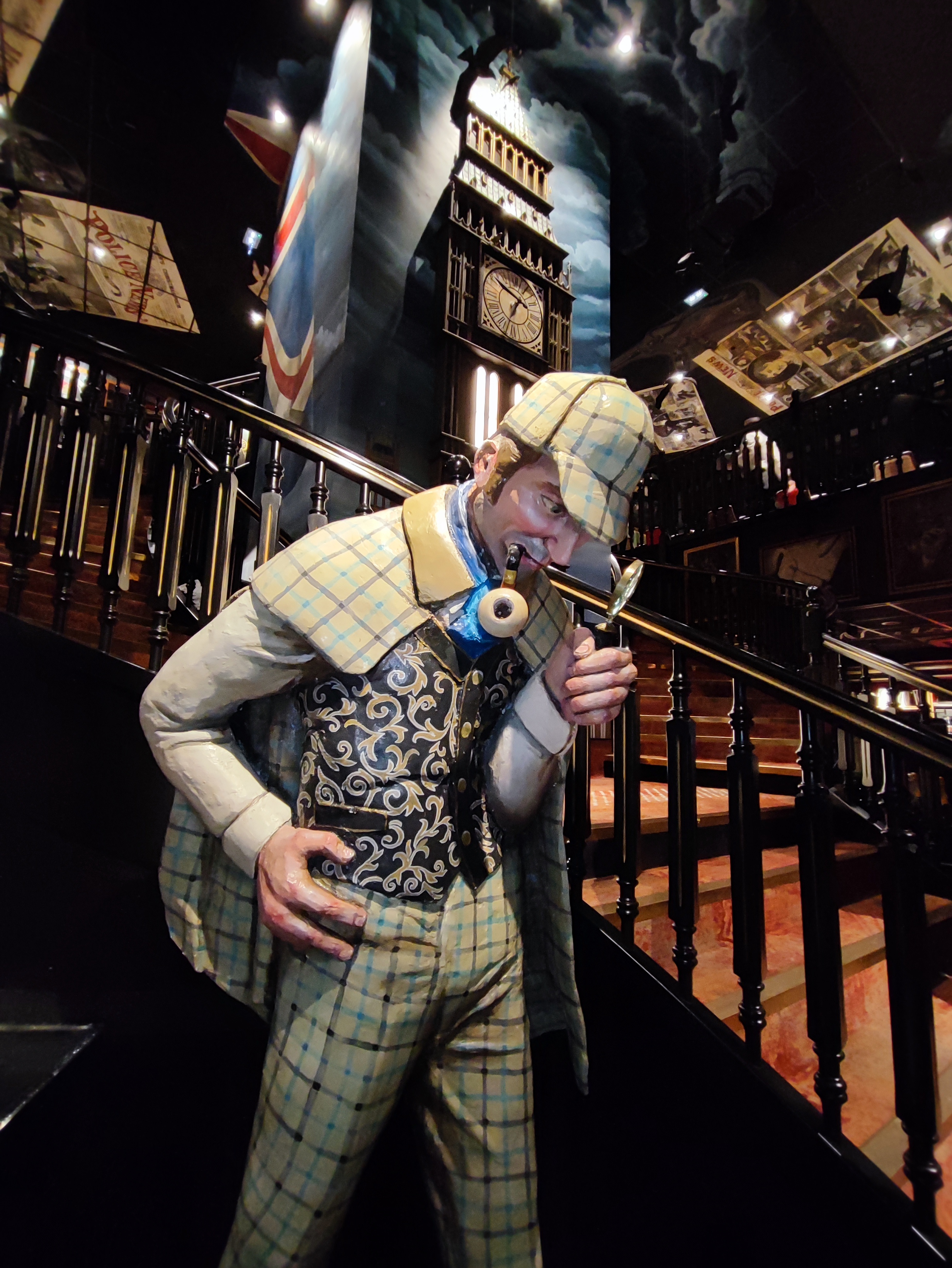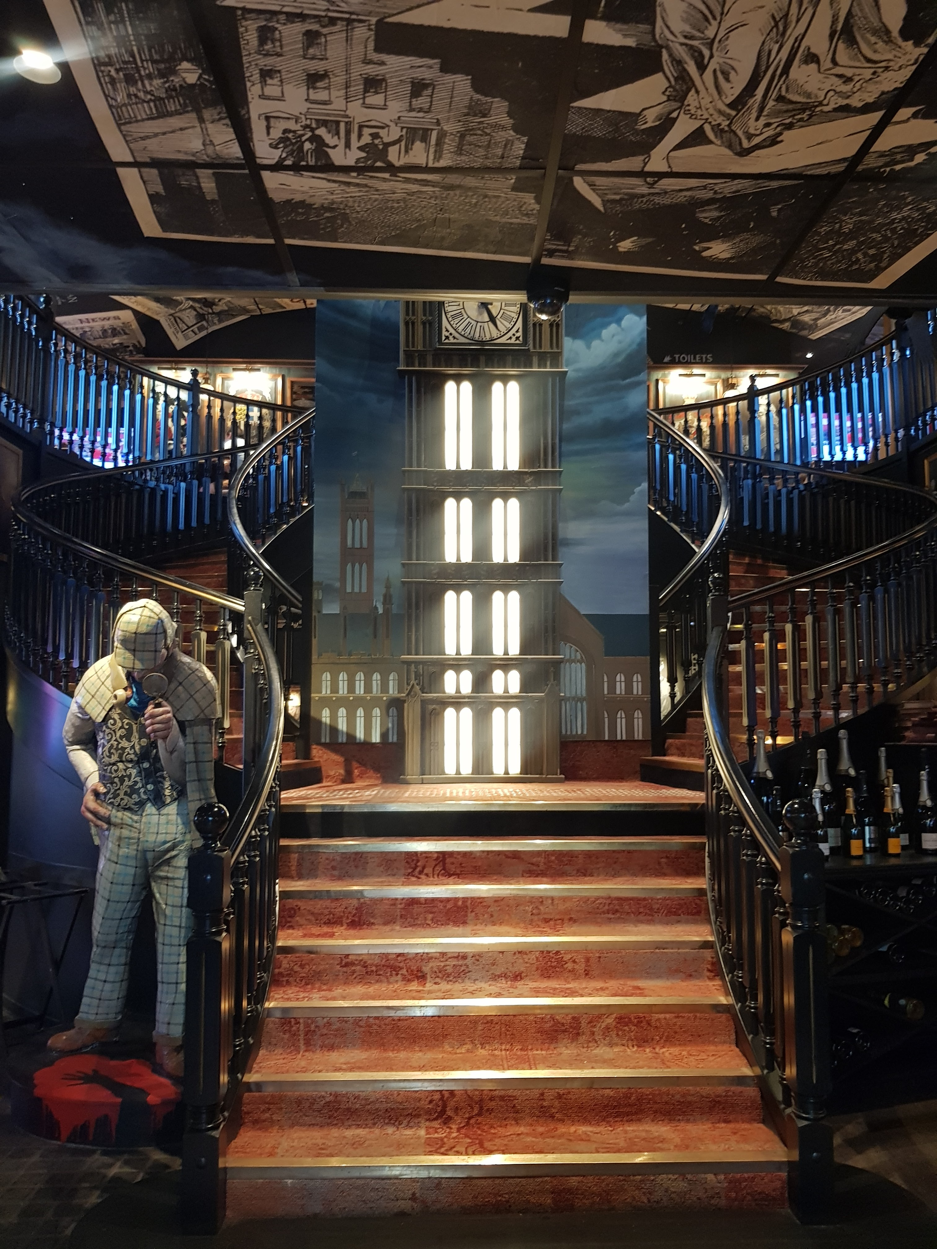 Décor style anglais, avec scène de crime autour de Sherlock Holmes, suffisamment soft pour ne pas faire peur aux enfants et âmes sensibles. Dépaysant le temps d'un repas, bonne cuisine et prix abordables.