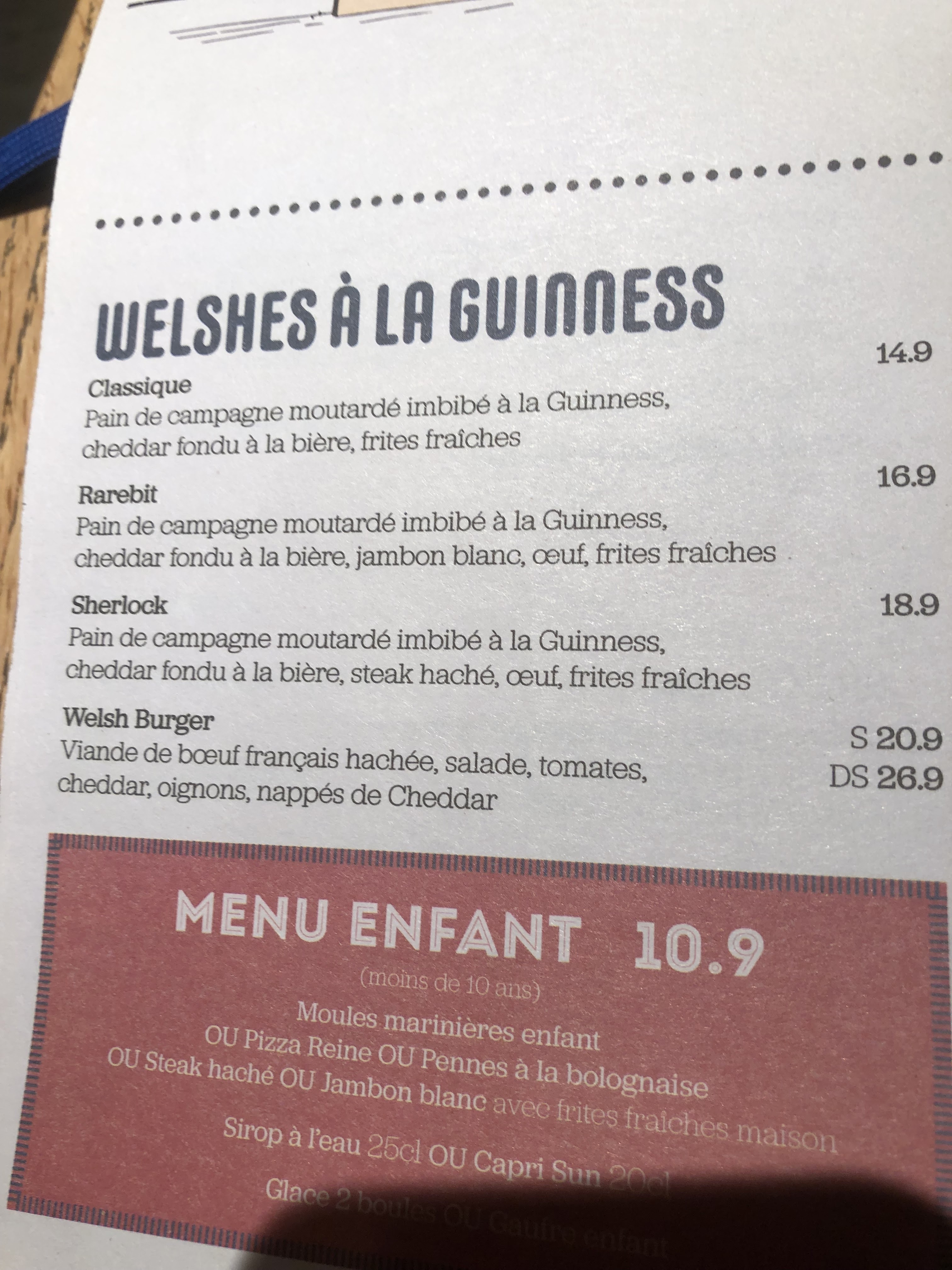 Accueil chaleureux et souriant, les plats sont très bon (Welsh Sherlock) , les frites également. Les serveurs sont tous souriant et disponible pour vous servir et desservir. Le brin d'humour a était apprécier. Bonne continuation a l'équipe. Bravo pour votre service d'hier soir. Cordialement