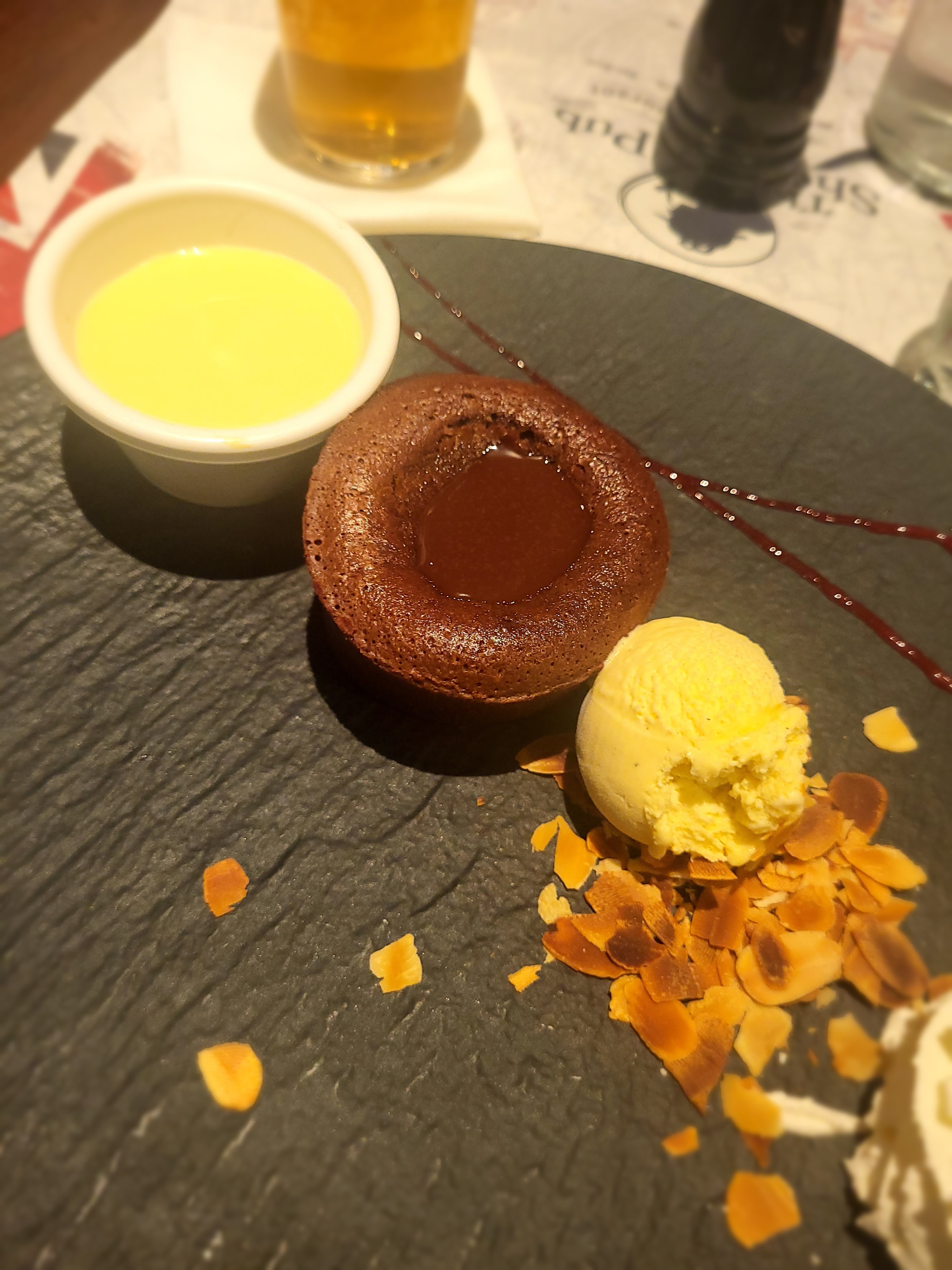 Je recommande ce restaurant, une très belle décoration à l’anglaise Nous avons passé un excellent moment, de nombreux employés à l’écoute de leurs clients, une cuisine simple et efficace, quantité largement suffisante et de nombreux choix pour plaire à toute la famille ☺️ Le moelleux au chocolat : une petite merveille 😍 Merci à vous et à bientôt