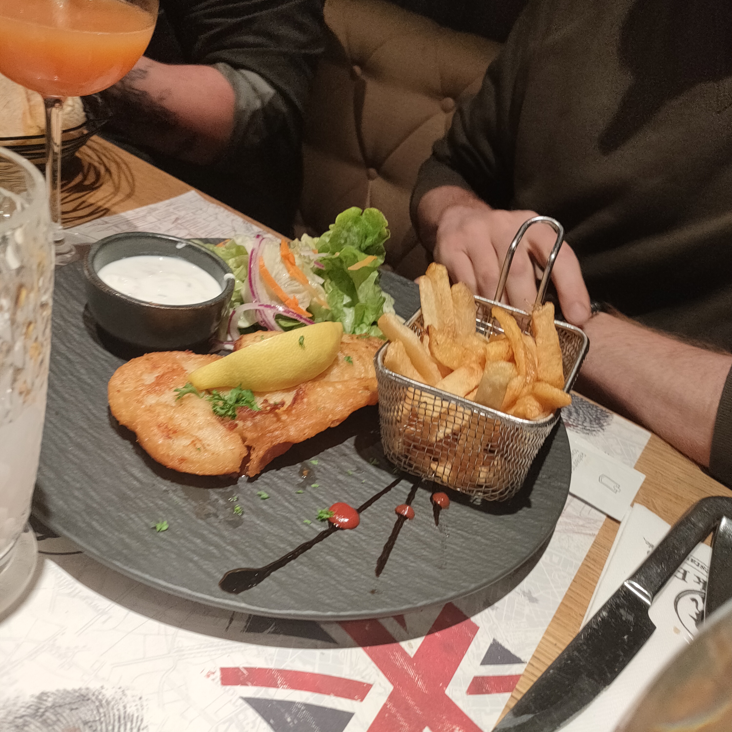 Ambiance typiquement anglaise, les plats ont été vite servis et très bons avec une très belle présentation. Je me suis régalée avec une choucroute de la mer tellement copieuse que je n'ai pas pu tout manger ! Nous y retournerons avec plaisir. 😀