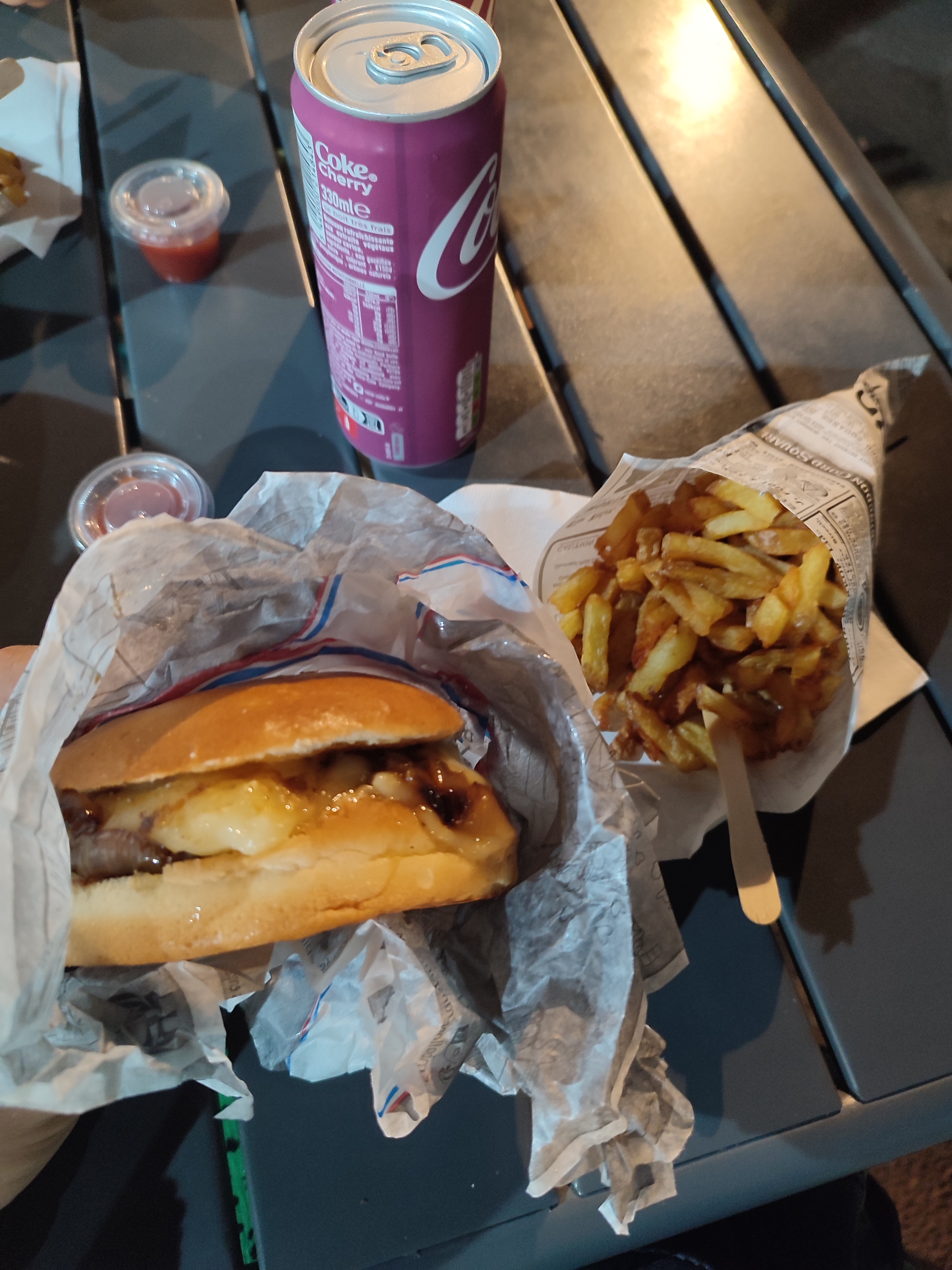Vous allez me revoir là c'est une certitude, un burger cheese tellement délicieux et des frites esquisse ! Merciiii