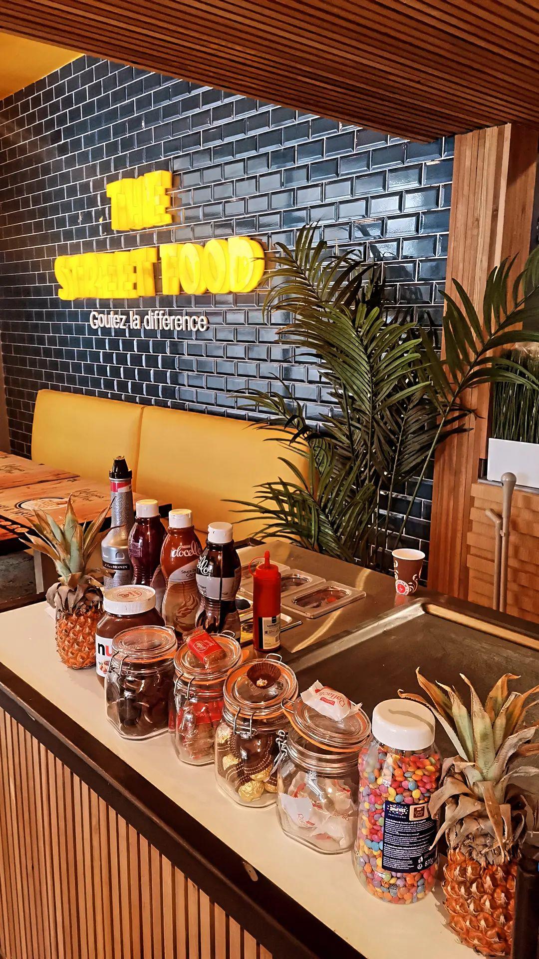 Très bonne endroit et atmosphère. Le cornet au poulet était délicieux et la sauce secrète qui va avec fait toute la différence. Note spéciale pour le ice roll Raffaelo ananas prepare par le chef sous les yeux, un délice pour les yeux et la bouche.