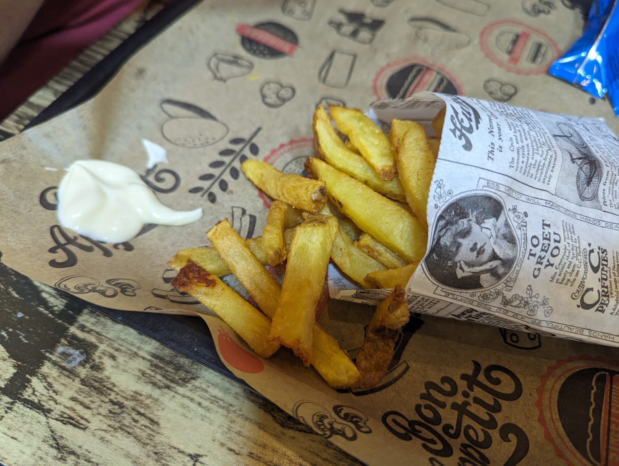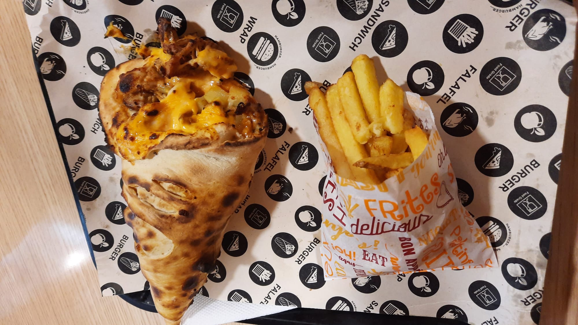 Les frites étaient super bonne en plus d'être jolies et le sandwich cornet était très bon, savoureux. Le tout servi avec une boisson à un prix vraiment pas cher !