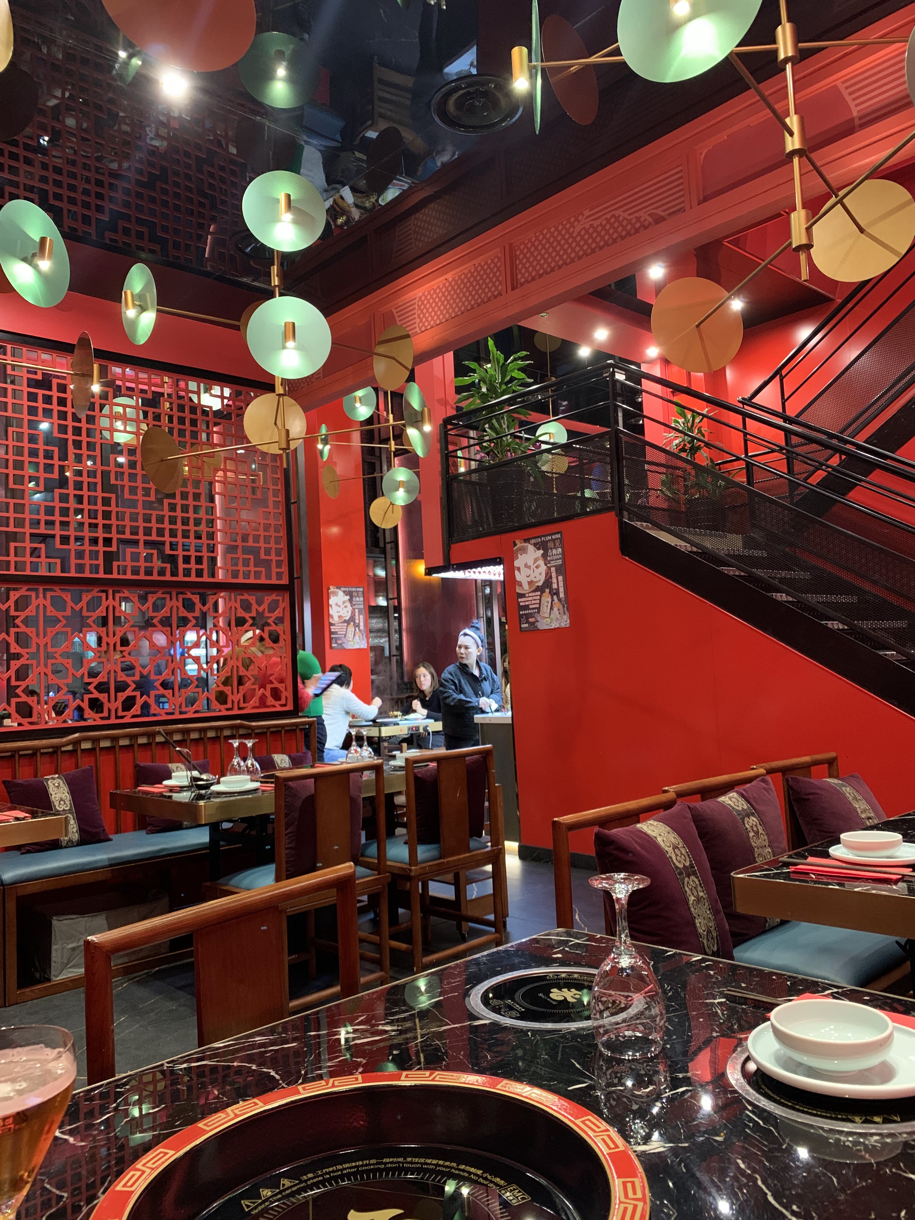 Très bon hotpot comme en Chine ! La déco est sobre, la grosse difference avec les autres hotpot est la hauteur du plafond qui est très élevé… ça change du standard parisien et on a l’impression d’être comme en Asie. Commande depuis la tablette donc pratique, prix un peu cher :)