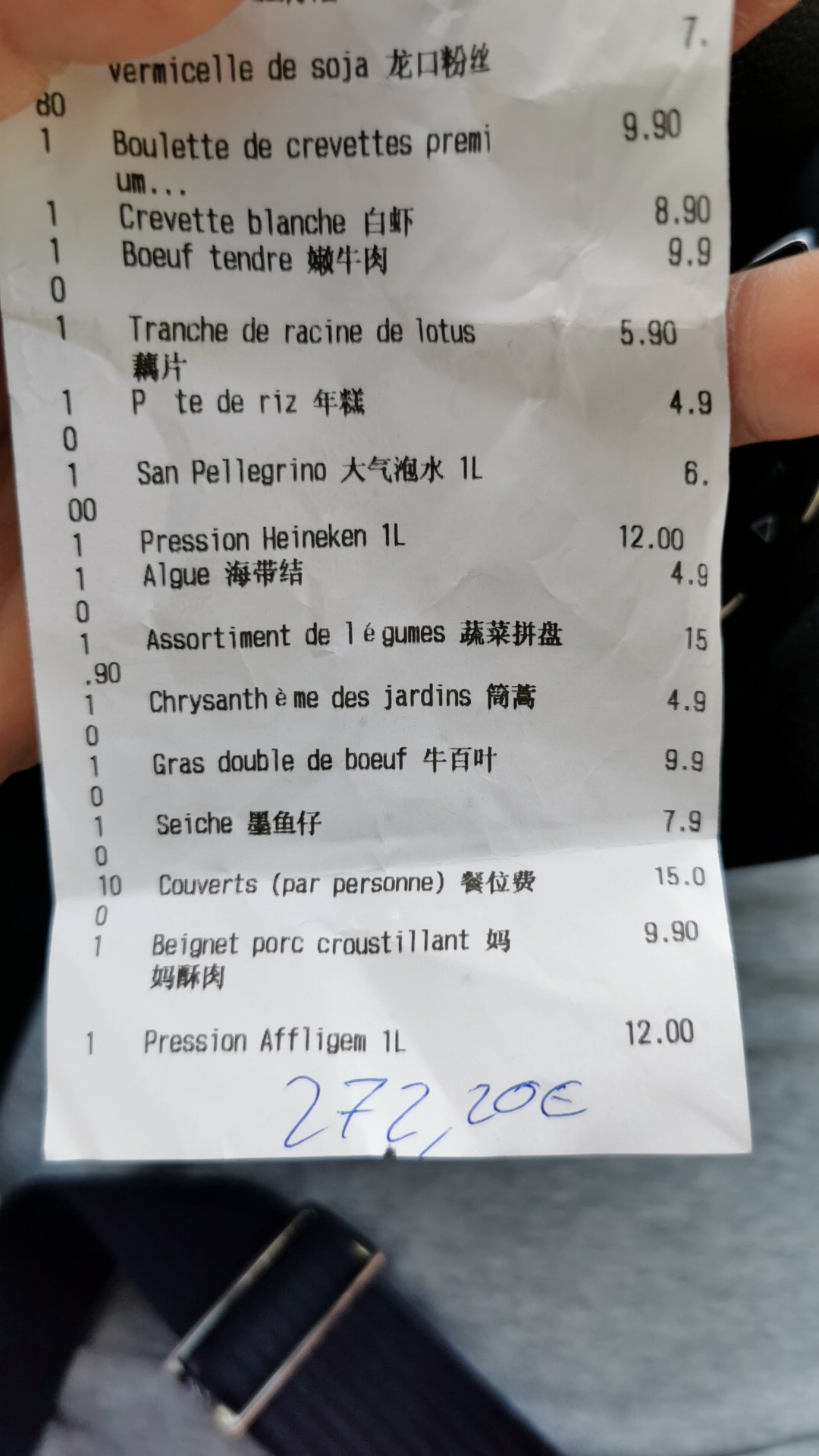 Je vis au Royaume-Uni depuis près de six ans et je vis également dans la capitale au cours de la dernière année. J'ai emmené un ami britannique qui aime la fondue manger de la fondue au Royaume-Uni plus de 50 fois. Je ne m'attends pas à manger du hot pot dans ce restaurant à Paris aujourd'hui. Nous avons eu notre pire repas dans un restaurant de hot pot, et c'était aussi le pire repas que nous ayons eu pendant nos dix jours de vacances à Paris, même si vous voulez être rassasié. même si vous dépensez 30 euros par personne, boissons non comprises, alors venez ici, les prix en France sont bien inférieurs à ceux du Royaume-Uni, mais ce restaurant de hot pot est beaucoup plus cher que les restaurants de hot pot que nous avons mangés au Royaume-Uni. . Nous avons d'abord demandé spécifiquement si 30 par personne étaient acceptables. Afin de nous laisser entrer dans le magasin, le patron et le personnel ont juré que ce serait bien si nous ne commandions pas de boissons. En fait, si vous regardez la liste des plats et notre. reçu que j'ai joint, ce n'était pas suffisant du tout, et peu importe la nourriture ici, il y a au moins une couche de laitue en dessous, la portion réelle est très petite. De plus, la qualité des boulettes n'était pas bonne. Nous avons commandé une autre boulette parce que nous n'étions pas rassasiés du tout et personne n'est venu après avoir commandé pendant longtemps. Ensuite, j'ai demandé au serveur, et il a simplement dit et est parti dès que possible. possible. Après avoir attendu longtemps, je n'ai eu d'autre choix que de demander à mon ami britannique de venir commander. Puis le serveur, dont l'anglais n'était pas bon, est revenu et m'a demandé : j'ai dit que nos raviolis n'avaient pas été servis. encore? Il a en fait dit que tu l'avais commandé ? J'ai dit oui et j'ai demandé à la serveuse de le commander, puis il a découvert que nous l'avions commandé. Je veux juste vous dire ce que vous vouliez dire lorsque vous avez dit de partir le plus tôt possible et de nous faire attendre. De plus, le bœuf sur la table à côté de nous n'a pas été servi. Ensuite, nous avons demandé au serveur, mais le serveur n'y croyait toujours pas. Mise à jour : après avoir mangé hier soir, j'ai eu une intoxication alimentaire en me couchant le soir, et j'avais encore la diarrhée en me réveillant tôt le matin ! ! !