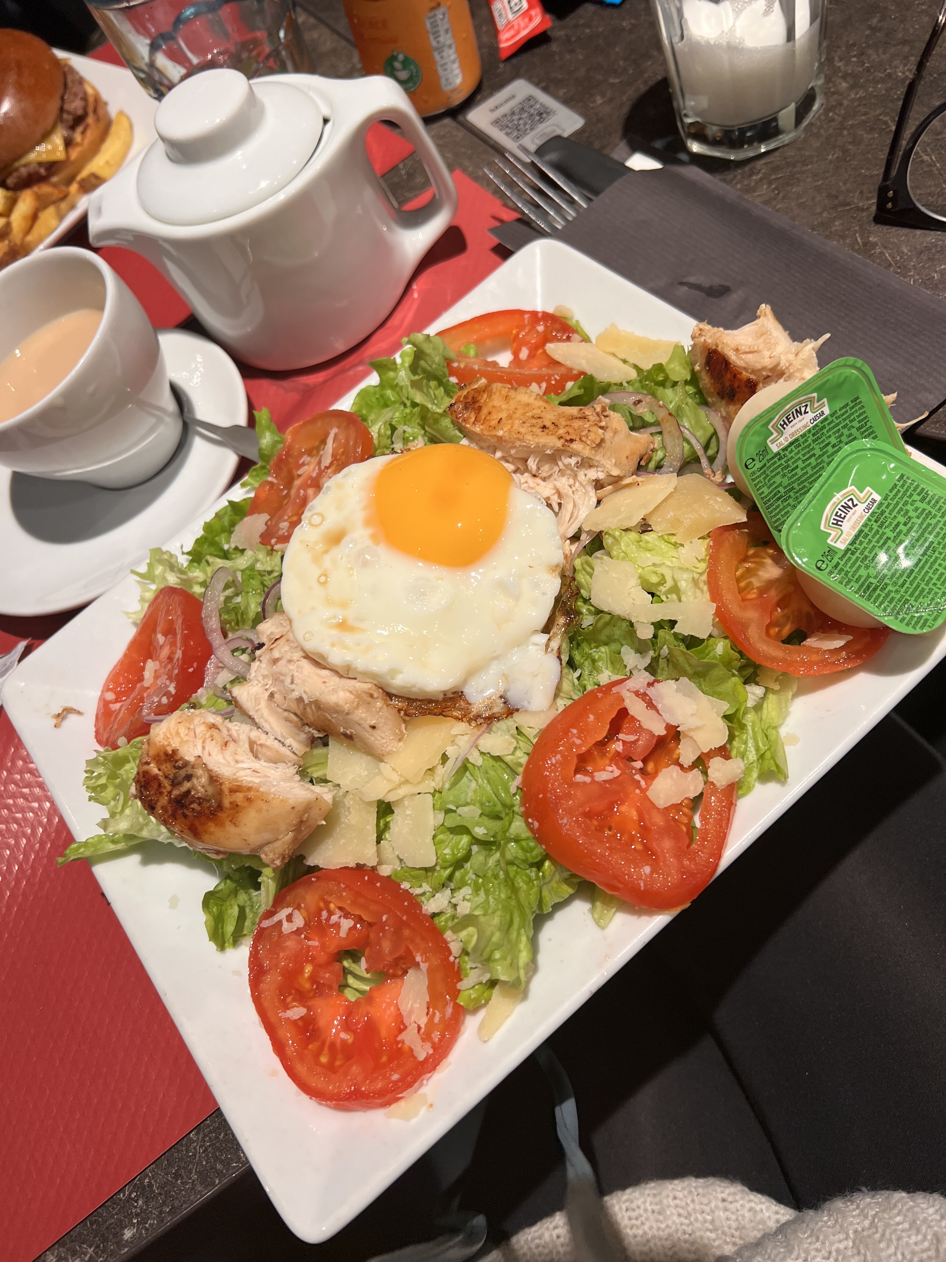 Salade césar copieuse mais pas top. Moi qui suis fan. Accueil simple. Par contre j'ai bien apprécié le fond musical (ambiance disco)