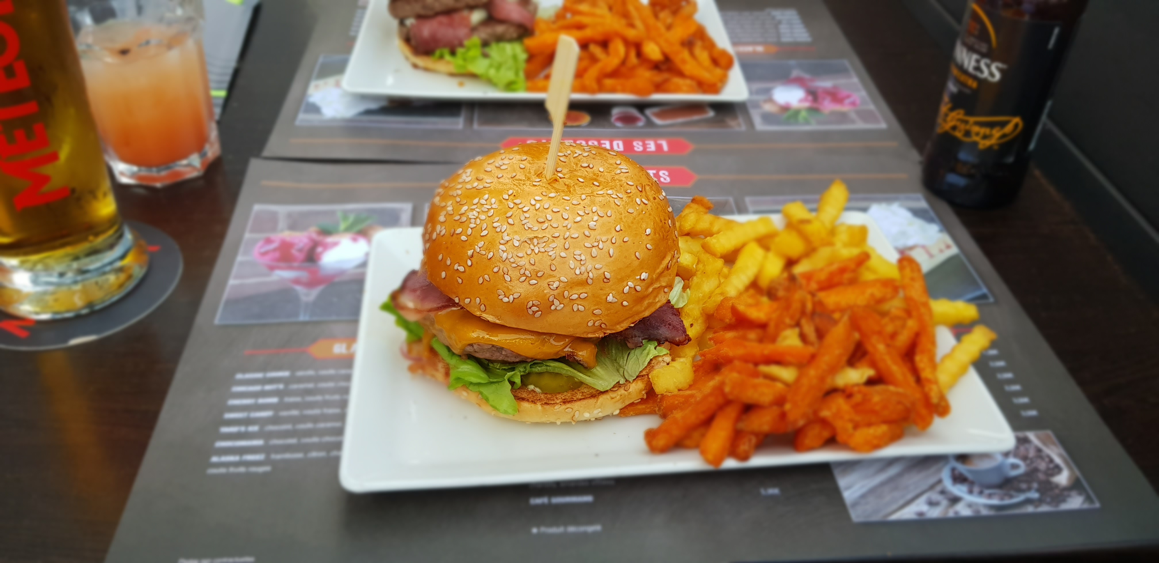 Grand choix de burgers généreusement servis possibilité de commander d autres plats sur la carte bonne carte de desserts et de cocktails service agréable
