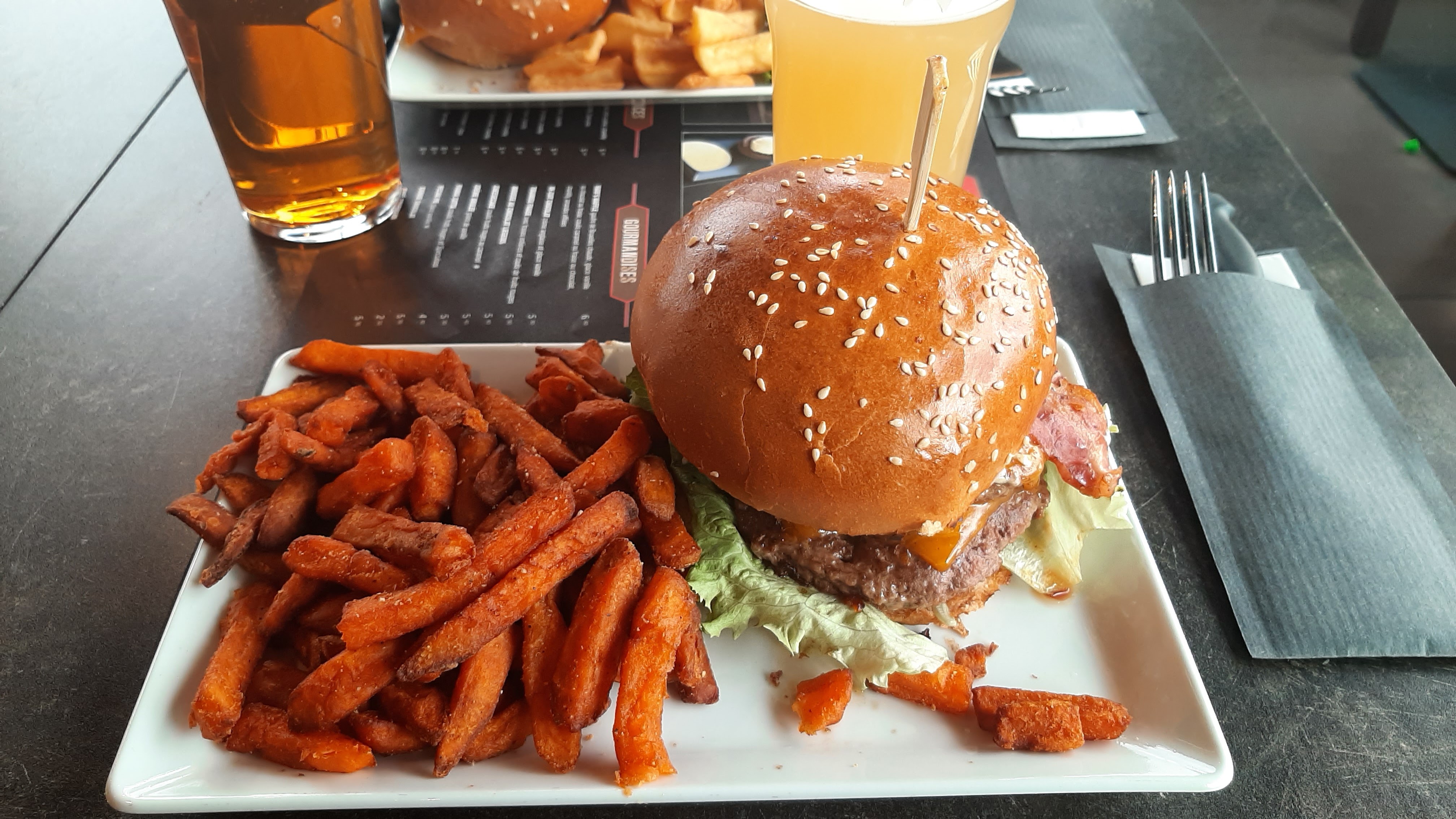 Toujours ravis de venir manger de bons burgers. Le petit plus choix entre frites et frites de patate douce.