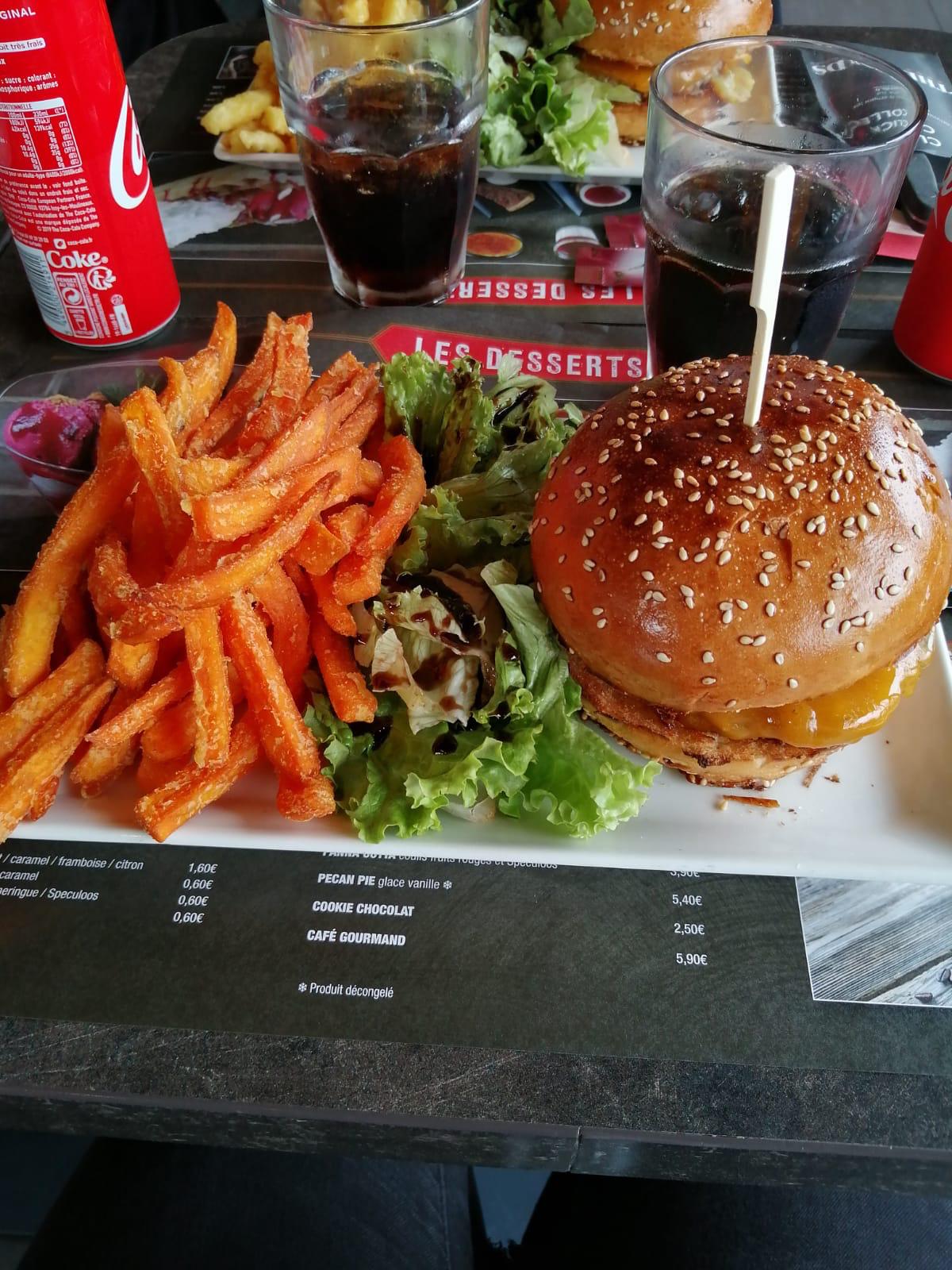 Découverte de ce restaurant dans cette zone. La carte est garnie et alléchante. On se laisse tenter par le menu midi semaine avec de beaux tarifs. La qualité est au rendez-vous, les assiettes garnies et nous sommes heureux de trouver un restaurant qui ENFIN propose des frites de patate douce !!! Une étiquette servant à renseigner la serveuse sur les assiettes est retrouvée sous le burger... On en informe la serveuse, les excuses sont données et le café offert. Restaurant ayant le sens du commerce !! Je recommande sans soucis